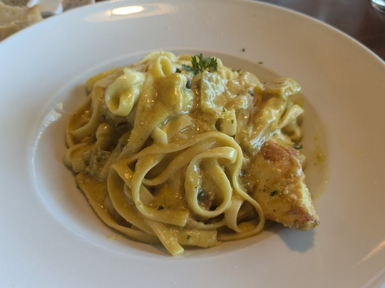 等了大约 10 分钟后,我们的饭菜上来了。我妻子点的柠檬鸡肉汤配米饭,酱汁非常浓。虽然柠檬味很浓,酱汁很浓,但也相当咸。我们两个盘子里的鸡肉都很干,严重依赖酱汁来保持水分,但酱汁本身太浓了。我的菜配意大利面,对我来说味道好一点,因为我更喜欢意大利面而不是米饭,但浓烈的柠檬味仍然让人难以忍受。