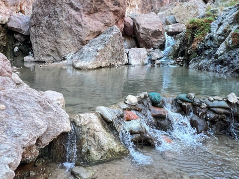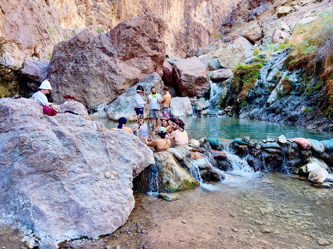 点评:Goldstrike Canyon Hot Springs is an unforgettable adventure for those ready to take on a moderate to difficult hike. The trail starts off easy the first 1.5mi but get ready to scramble! The hike features plenty of challenges, with rock scrambles and roped sections that demand both arm and leg strength. The trek down involves a 1,000-foot elevation loss, so be prepared for the uphill climb on the way back, which can be quite strenuous. The roped sections, in particular, require a good amount of upper body strength to navigate. Those without strong arms may struggle, especially on the return ascent. However, the effort is rewarded with beautiful hot springs and scenic views along the Colorado River. It’s a true escape into a canyon right next to the Hoover Dam. We went in October with perfect temps in the 70’s, not crowded and a peaceful atmosphere. Bring plenty of water, wear sturdy shoes, and go early to avoid the midday heat. This trail is best suited for more experienced hikers who are comfortable with technical challenges. We did encounter a family with 4 kids ages 11-18. The 11 girl wasn’t fast by any means, but her determination was notable. For those up for the journey, Goldstrike Canyon offers a memorable and invigorating experience.