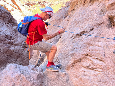 翻译:对于那些准备进行中等至困难徒步旅行的人来说,Goldstrike Canyon Hot Springs 是一次难忘的冒险。这条小径开始的 1.5 英里很容易,但准备好攀爬吧!徒步旅行充满了挑战,有攀爬岩石和绳索路段,需要手臂和腿部的力量。下山的路程涉及 1,000 英尺的海拔下降,所以在回程时要做好爬坡的准备,这可能相当费力。特别是绳索路段,需要很大的上肢力量才能通过。那些手臂不够强壮的人可能会很吃力,尤其是在回程时。然而,这种努力会得到美丽的温泉和科罗拉多河沿岸的美景的回报。这是胡佛大坝旁边峡谷的真正避难所。我们是在 10 月份去的,气温在 70 华氏度左右,人不多,气氛宁静。带上足够的水,穿结实的鞋子,早点去,避开正午的炎热。这条路线最适合经验丰富的徒步旅行者,他们可以应对技术挑战。我们确实遇到了一个有 4 个孩子的家庭,年龄在 11-18 岁之间。11 岁的女孩速度并不快,但她的决心令人印象深刻。对于那些准备踏上旅程的人来说,Goldstrike Canyon 提供了一次难忘而令人振奋的体验。
