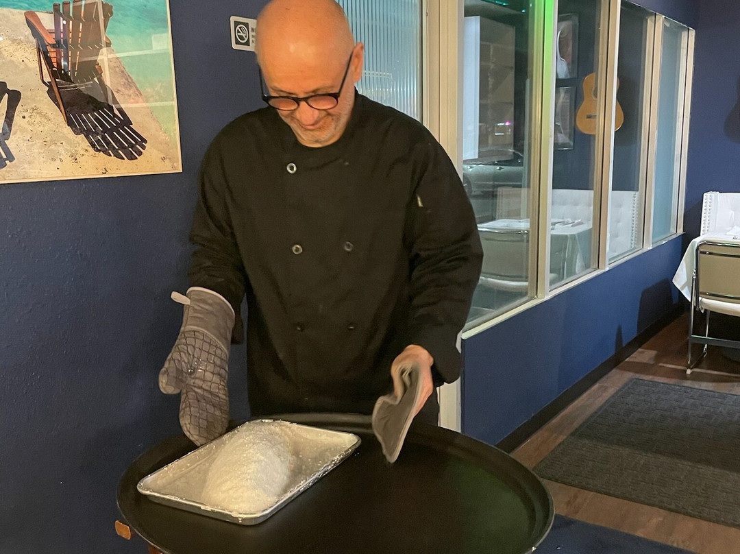 点评:This restaurant is owned by a Chef named Farman and his wife named Babette (Barbara), who is also the waitress. What a lovely, quaint atmosphere! The tables are dressed with fine white linens, and Christmasy decor atop (our visit was in December). There are beautiful hanging light fixtures above the tables. The walls are adorned with pictures of Spain and an acoustic guitar on one wall. There is also a window to view into the kitchen as the chef prepares your meal. It is only a mile or so from the Vegas strip in the Twain Center, but our table had a perfectly centered window view of the Sphere. Now, This is a small restaurant in a shopping strip and not at all what you would imagine would be inside... Not to mention the food!! I had never tasted authentic Spanish food before. I even had to ask my sister to describe to me what it was exactly as we were choosing a restaurant on TripAdvisor. This was the first time that I ever had a squid, a muscle, and calamari. I do like to try new things, and this was a whirlwind of new things for me! These were gourmet dinners with unbelievably low prices! The chef comes out of the kitchen and welcomes you by name, if you have a reservation! We actually made friends and scheduled another visit with a pre-ordered dinner 24 hours in advance. In doing so, you get a much larger menu. Our chef also gave us a quick ride to the Sphere, where The Eagle's concert was starting, because he didn't think it was safe for two ladies to walk. Now, how is that for Service? These are two of the Nicest people that I have ever met! You can tell that they love what they do!