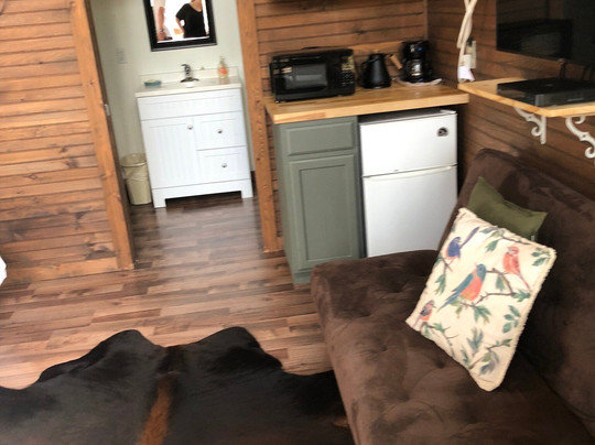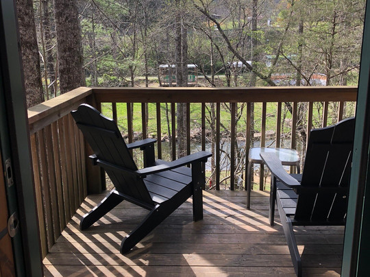 点评:We were in town to drive the Skyway and decided very last minute to stay the night. We were fortunate enough to get the very last vacancy available at Rivers Edge Treehouse Resort. The check-in is self service and super simple. The room was just as lovely as pictured online and SUPER clean. There’s a large TV, sofa/futon, dining table, mini coffee pot, microwave and empty fridge free to use. The king size bed had a Tempur-pedic mattress and very nice linens. There were plenty of towels, delightfully scented toiletries and the water pressure was excellent. A lovely deck with string lights and a gas grill available. Two trees grow right up through the deck and outside overhang! There is a lighted footpath to the river bank and an area for a campfire, horseshoes & cornhole and a glider bench. It was so beautiful. The only inconvenience was that there was only two medium sized bags of decaf ground coffee (no tea option) with no scoop or instructions on how much to add to the mini sized pot, and no bottles of water to use. The house is on, what smelled to be well water, with a noticeable sulphuric smell, so fresh water for coffee would’ve been appreciated. So between the water and having to guess at how much decaf only grounds to use, coffee was a bust but that’s pretty minor. It would be nice if they had a Keurig and pods. Anyhow, we really look forward to visiting again in the fall. I’ve already recommended it to a family member traveling to the area soon. As a side note the night we stayed there was a tornado watch and a strong storm… The house had movement but we felt very safe - these houses are solid!