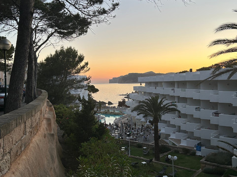 点评:Stayed for a week around half term. Positives and negatives Staff all friendly. Restaurant clean and spacious with reasonable variety of food. Sometimes even arriving at opening times the food wasn’t very hot. The rooms are very outdated and in need of refurbishing. Beds very hard and pillows too soft. Mattress on extra bed was absolutely worn out and very uncomfortable. The noise from the corridors was awful not helped by kids running up and down and people having full blown conversations til late at night. Woken every morning by 7am with noise from floors above. As for sunbeds- if you want to get up at 5.30/6am to put your towels down great but no thank you. We headed to the beach then we weren’t squished in like sardines. That said once it went quieter towards the end of school holidays there were beds still available at 8am. No kettle in room but after 3 days I requested one and it was delivered to room in 30 mins. WiFi was none existent in room only in reception so ended up costing me a lot in roaming charges as I needed it for a cardiac device at all times. The location is one of the positives. Beautiful view from the cove. 5 mins walk to restaurants and bars, supermarkets etc. Taxi to Santa Ponsa varied 4-7 euros. Had a nice break but could have been better.