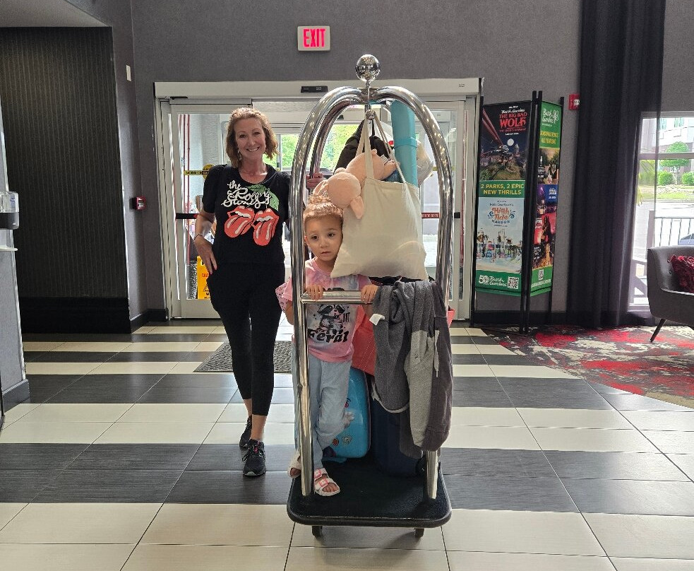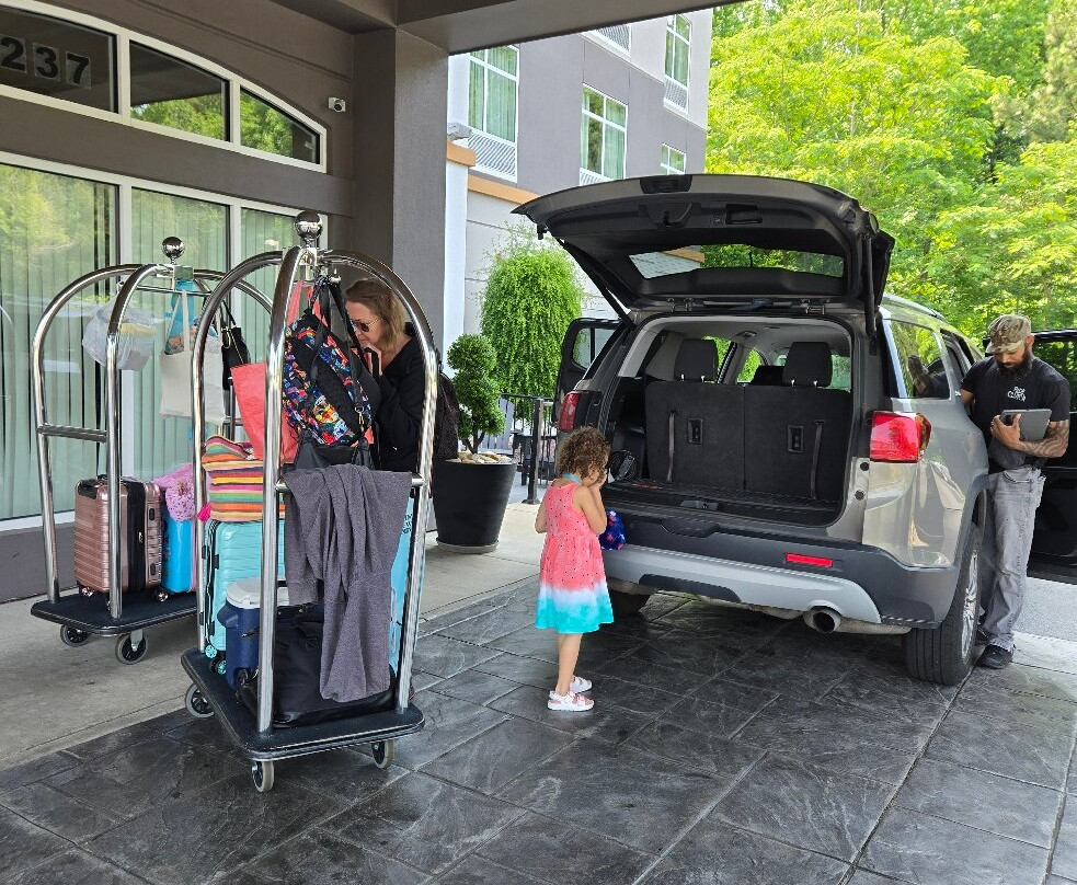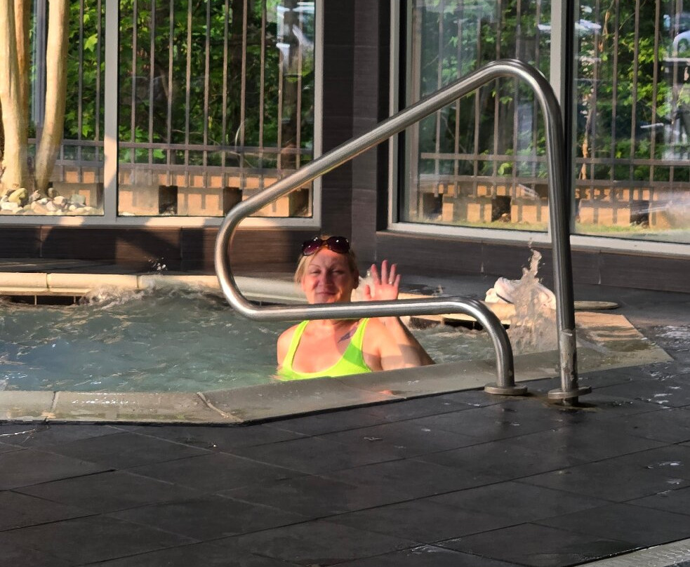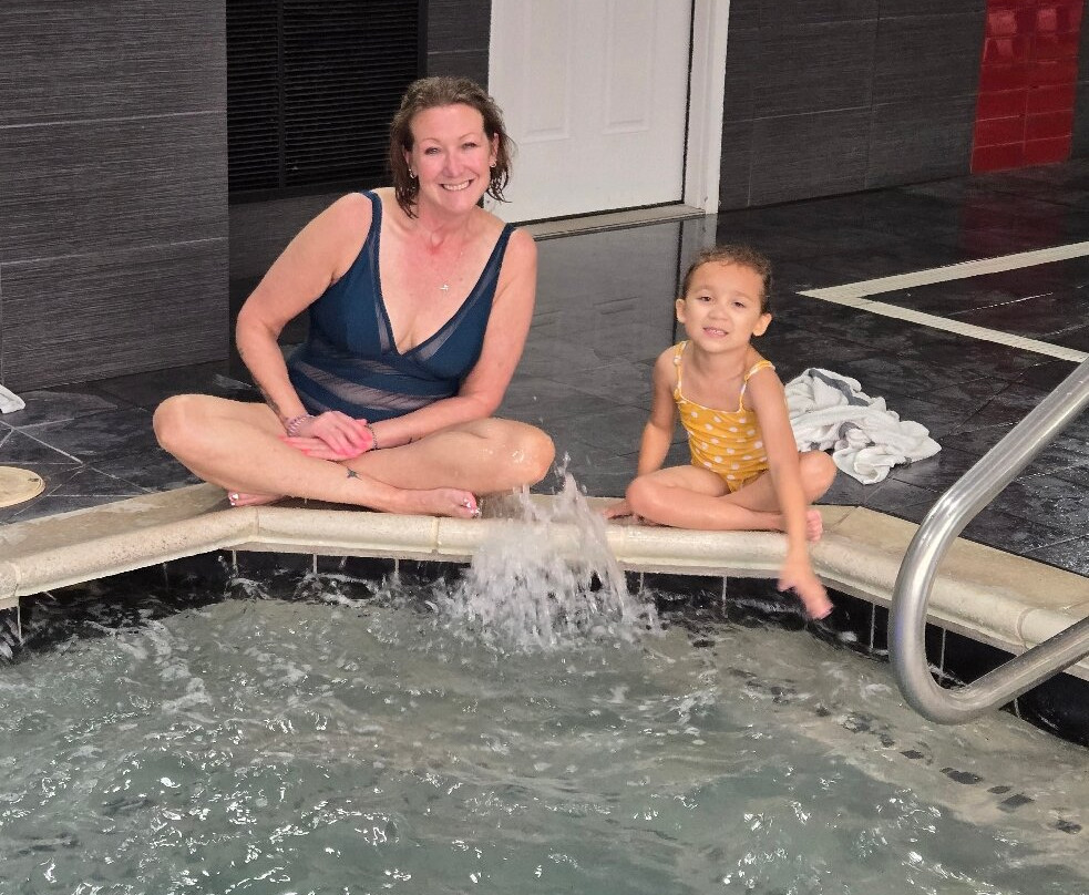 翻译:周日抵达,两层楼的大堂气味宜人,非常现代化,前台服务也很棒,员工也很热情友好。房间就在一楼最前面的两间,就在大堂旁边。大堂里就有新鲜的柠檬冰水和超市。大堂另一边的早餐区很宽敞。热早餐种类繁多,应有尽有。贝果、吐司、奶油奶酪、果冻、糕点、松饼。我们住了两晚,他们提供炒鸡蛋、香肠、切片烟熏香肠、饼干、肉汁、两种华夫饼和三种果汁。24小时咖啡供应。食物是不错的免费酒店餐食。别指望米其林星级。两层楼都有冰块。干净的蓝色灯光照射下,泳池很大,还有大型加热按摩浴缸。泳池毛巾很多,有座椅、椅子和躺椅。泳池深3-5英尺,四周环绕着带出口的窗户。开放时间:早上6点至晚上11点。套房非常放松舒适,灯光明亮,地毯干净整洁。衣柜很大。床和枕头都很棒。真希望我能把床和枕头带回家。墙上的空调温度控制方便,效果很好。有很多免费停车位。酒店很安静,主要是家庭住户。