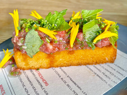 翻译:昨天在这里吃了一顿早晚餐,选择坐在靠窗的吧台上。没有参加厨师试吃,而是决定点菜。我们先喝了鸡尾酒,Shiso Popular 很清爽,花园派对很有趣。