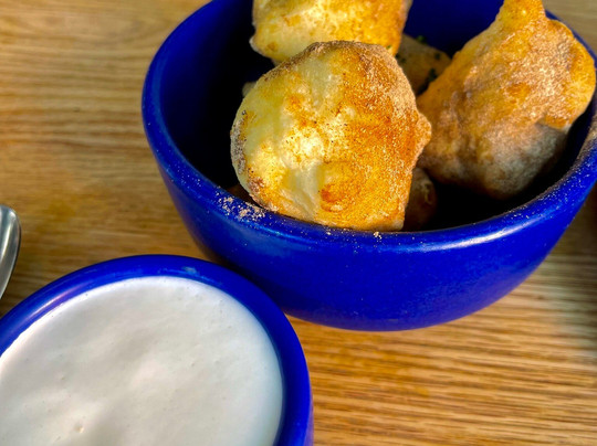 The Doughnuts- fluffy/thick and chewy. It was warm great with the cheese.