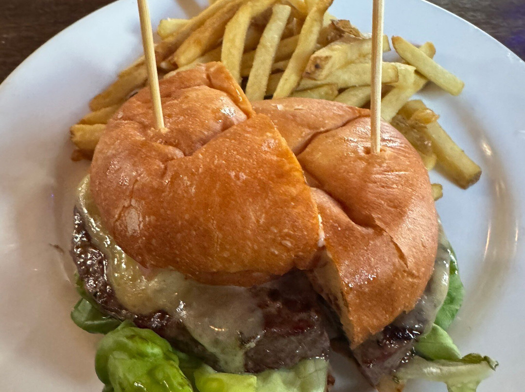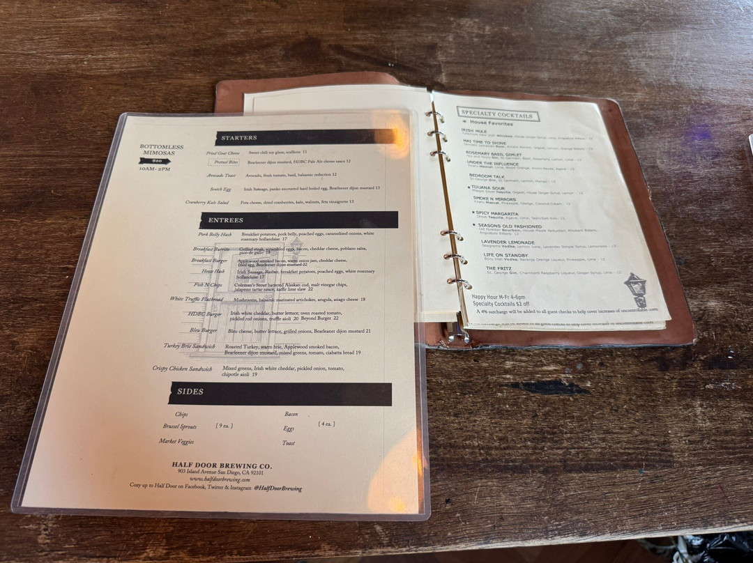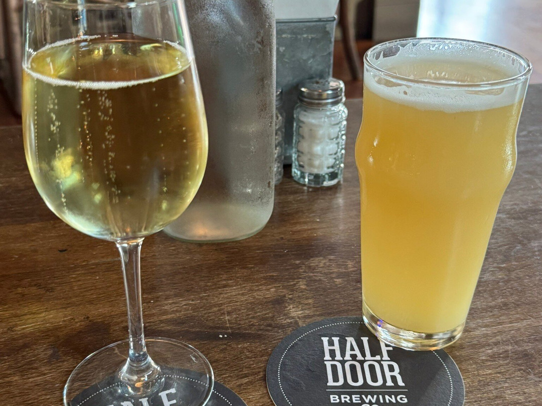 点评:My husband and I could see Half Door Brewing from our hotel room across the street. We decided to go and see if we could have a meal with our dog, Suki, in tow. And of course, she was welcome, not just on the outdoor patio but inside too. We plopped ourselves on their loveseat in front of a low coffee table next to a bookcase upstairs. It was comfortable and there were TVs playing football throughout. Suki settled herself in the crevice between the table and the bookcase surveying the people walking by. We were there well after the lunch hour so it wasn't as busy. We ordered some drinks and the HDBC burger. He had a hazy IPA while I went with a sparkling white wine. We had not been drinking too much in the last year but this was a vacation so we let loose. The burger was cut in half for us and the fries were delectable. The burger was nicely cooked to medium as requested. We enjoyed the bite and the drinks. This brewery/restaurant was a great spot to unwind and I was so happy that they were so dog friendly! Suki was on her best behavior but she had some trouble with the stairs so she had to be carried. Service was excellent and we walked around the area after our late lunch to burn off some calories.