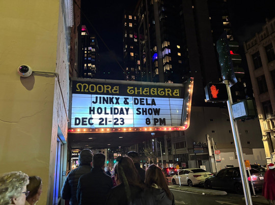 翻译:这是我们第一次在摩尔剧院看演出。排队的人绕着剧院转了一圈才进去,但保安们做得很好,让每个人都能快速进去。调酒师人很好,但要注意饮料很贵。(意料之中,但不知何故总是令人震惊。)强烈推荐地下室酒吧,因为那里的选择多,服务也快!剧院本身很漂亮!不过最大的惊喜是阳台上的座位很窄,包括座位本身和过道。每个人看起来都像是把膝盖压在前面的人的脖子上,对于一个患有不安腿综合症的人来说,这非常不舒服。我们去过全国各地的历史剧院,但从未见过这么窄的座位和过道。(包括杰克逊维尔的佛罗里达剧院!)幸运的是,演出很精彩,能够分散一些座位不适的注意力。大楼里的暖气/空调运行良好,整个晚上的温度都很舒适。