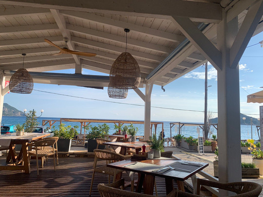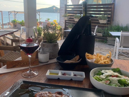 翻译:这是我在Agios Georgios North常去的餐厅之一。这里人潮涌动,但老板Alex总是尽力满足顾客的需求。餐厅位于海滩尽头一个安静的区域,毗邻San George鸡尾酒吧。用餐时可以欣赏到美丽的海湾景色。食物真的非常美味。食材上乘,烹饪精良。这里不是您常去的希腊酒馆度假胜地,所以不要期待看到希腊舞蹈、摔盘子或任何常见的游客陈词滥调。您将享用到城里最好的餐点和优质的服务。价格方面?比一些餐厅贵一点,但也不贵太多。就其品质而言,价格非常合理。主要的价格差异在于葡萄酒,因为他们不提供常见的“House Carafes”(自酿玻璃瓶)。所有葡萄酒均为品牌酒,价格在20欧元起,但品质不错。如果您需要建议,Alex总是乐于助人。不妨去拜访他们,您不会后悔的。