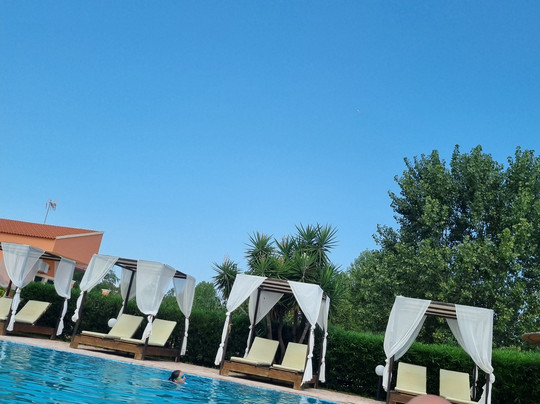 The pool and sunbeds were beautiful and clean, lovely bar and restaurant area, even a BBQ night.