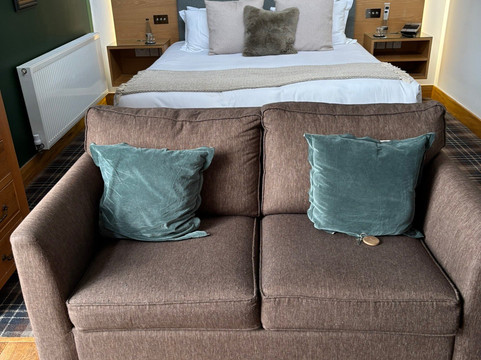 翻译:我们在这里住过很多次,也吃过很多次,三月底和朋友们又去了一次,感觉很棒。我们享受了周日晚餐俱乐部的优惠价,里面包含一份套餐。我们觉得选择还算丰富,非常享受。房间很漂亮,有一张舒适的大床、带椅子的休息区,以及一间带大淋浴间的宽敞浴室。这里非常适合放松身心。酒店为我们四条腿的朋友准备了狗碗和床,花园房旁边的大片空地也为它们提供了奔跑的空间。早餐也很棒,选择丰富。不过,我更希望欧陆式早餐能像以前一样摆出来供客人选择,而不是从菜单上点菜。我想这样既省钱又能避免浪费。总而言之,这是一个很棒的住宿地点,工作人员总是非常友好。我们一定会再来的,并且很乐意推荐。