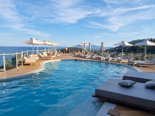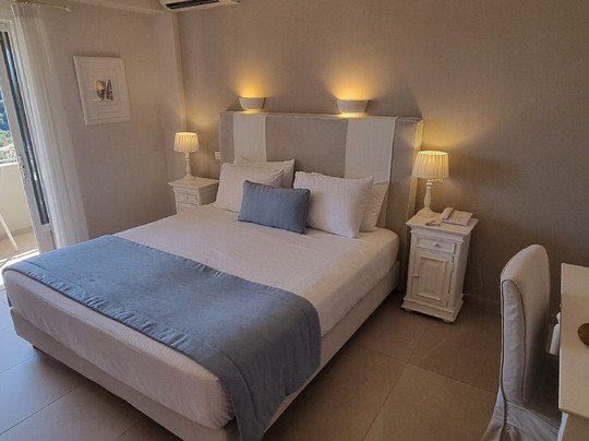 点评:L'hôtel est très bien situé et offre une vue splendide sur la baie ! L'eau y est cristalline et les couleurs vont du turquoise au bleu profond. Il y a beaucoup de petits restaurants locaux en bord de plage et je recommande vivement " Chez Thomas". Le complex hôtelier est très bien intégré au paysage (en escalier) même s'il est immense. La piscine du haut offre une vue magnifique ! Notre chambre avec balcon était superbe (au niveau 6) et offrait une vue imprenable. Le seul petit hic était une lumière verte en haut à gauche de la fenêtre qui éclairait beaucoup la chambre. Le petit déjeuner est excellent et offre un choix incroyable. Il ne manque absolument rien et c'est très bon. Le personnel est très gentil et serviable. Le transfert en taxi coûte 70€ depuis l'aéroport. Si vous voulez du calme et n'avez pas peur de beaucoup d'escaliers ou d'ascenseurs, c'est l'endroit idéal pour vous relaxer.