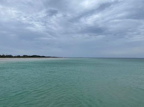 For most of the walk, the water is shallow enough that if you dropped your keys, you could probably walk out and get them. By the time you get to the end, it’s deep enough that you’ll see the shipping channel and think, "Yes, this is definitely where the sharks hang out to watch the tourists".
