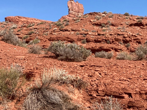 点评:The Valley Of The Gods is a pristine area seen by few, which is probably why it is so beautiful and undisturbed. The seventeen-mile road through the valley is at best rough, at worst, very difficult and bone shaking. Driving a ¾ ton truck, you are forced to travel slowly or in need of a Chiropractor, soon. As seasoned RV travelers, we pulled in with a 28-foot fifth wheel, very slowly. The BLM requires BoonDockers to stay within existing camp sites. It was difficult to find a site away from the main road large enough for our rig. We did so and spent three wonderful days exploring, hiking and photographing an undisturbed piece of southwestern nature. In addition to the solitude and total quietness, we discovered the entire seventeen-mile trek was free of debris, such a welcomed difference from driving through the Navajo Indian Reservation. Excellent Verizon phone coverage and of course, no water, bring sufficient as the nearest source is in Mexican Hat, an hour drive. The little convenience market/gas station in Mexican Hat has friendly staff and a great supply of essentials. As others have said, do not attempt to travel when the road is wet, you will require a tow truck to be rescued.