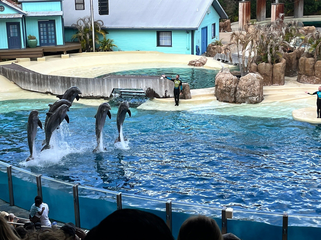 翻译:我们给两个十几岁的孙子孙女买了海洋世界的门票作为圣诞礼物(想让他们体验一下,而不是送礼物)。我们玩得非常开心!早上8:30我们就到了,他们让我们直接进入了开园区,9点准时开园。停车、安检和入园都很顺利。游乐设施很棒,尤其是我们15岁的孙子特别喜欢的“蝠鲼”(Manta)。他平均每个过山车都要排队20分钟,而且这可是春假期间!动物互动体验很棒,“虎鲸和海豚表演”精彩绝伦,“企鹅漫步”也很酷。“探险奥德赛”(Expedition Odyssey)让全家人都兴奋不已,虽然排队时间最长,有45分钟,但它是全新的。“魟鱼礁湖”(Stingray Lagoon)也很有趣,食物选择丰富,礼品店也很不错。我们11岁的孙女选择了Chick-Fil-A,这倒也不错,菜单一样,只是价格更高一些。我们都点了三明治,还一起分享了一些薯条,坐在宽敞的遮阳棚下用餐。我们几次利用快餐店提供的免费冰水,天气很热,即使到了三月底也是如此。我们原本打算在湖畔烧烤餐厅吃晚饭,但下午五点多到的时候已经关门了。我们买了些零食,又做了些其他事,拿上我们的毛绒虎鲸,大约六点半就离开了。对我们这些爷爷奶奶来说,这真是充实、快乐又疲惫的一天。