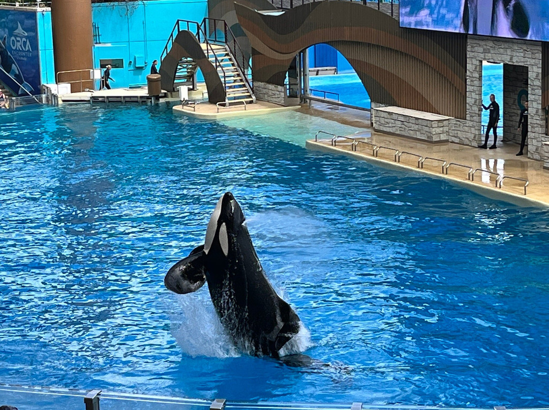 点评:We bought SeaWorld tickets for our two teenage grandkids for Christmas (trying to do experiences instead of presents). We really had a good time! We arrived at 8:30 AM and they let us in to a rope drop area which dropped at 9 AM on the dot. Parking, security and entrance was stress free. Rides were awesome especially Manta according to our 15 year old grandson. He waiting an average of 20 minutes for each coaster and this was spring break! The animal encounters were wonderful, orca & dolphin show phenomenal and the penguin walkthrough was really cool. Expedition Odyssey was thrilling for the whole family, this was our longest wait at 45 minutes, but it’s brand new. Stingray Lagoon was fun, food options plentiful, gift shops were nice. Our 11 year old granddaughter picked Chick-Fil-A, which was not a bad option, same menu with higher prices. We all had a sandwich and shared some fries and sat in a spacious covered seating area. We took advantage of the free ice water at quick serve places a few times, it was hot, even late March. We were going to have dinner at Lakeside Grill, but we got there a little after 5 PM and it was closed. We grabbed a snack, did a few more things, grabbed our stuffed Orca and headed out about 6:30. It was a full, fun filled, exhausting for us grandparents, day.