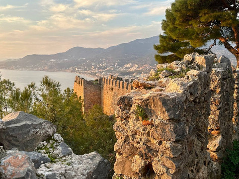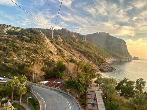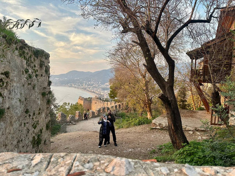 翻译:阿拉尼亚堡垒(Alanya Kalesi)绝对是最受欢迎和游客最多的景点。从这里您可以欣赏到最令人惊叹的城市全景。每个人都建议日落时来这里,我们就是这么做的。为了不浪费时间,我们乘坐缆车上山,票价为每人 345 里拉(往返)。如果你打算原路返回,最好早点出发,因为缆车于下午 6 点停止运营(至少在冬季)。而堡垒本身在下午 6 点关闭,与此同时,还能看到完整的日落。事实上,要塞的主核心可以被非常快速地绕过,实际上只需半个小时。说实话,我不知道还能在那里待多久,那些地方确实风景如画,但一切都被栅栏围起来了,你只能沿着严格指定的路径行走,不能到处闲逛。所以,是的,这座堡垒的外观比内部要好。