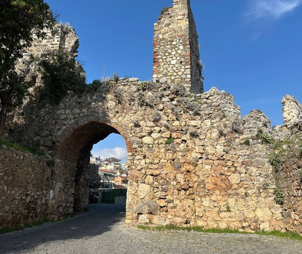但实际上,这只是堡垒的一部分,因为半岛的整个山脉实际上都被堡垒墙包围着。山顶的堡垒是这座山的中心。土耳其人称之为 Iç Kale,即内堡。半岛上的军事设施除内堡外,还有山顶的堡垒(Ehmedek)、山脚下的红塔(Kızıl Kule)和造船厂(Tersane)。