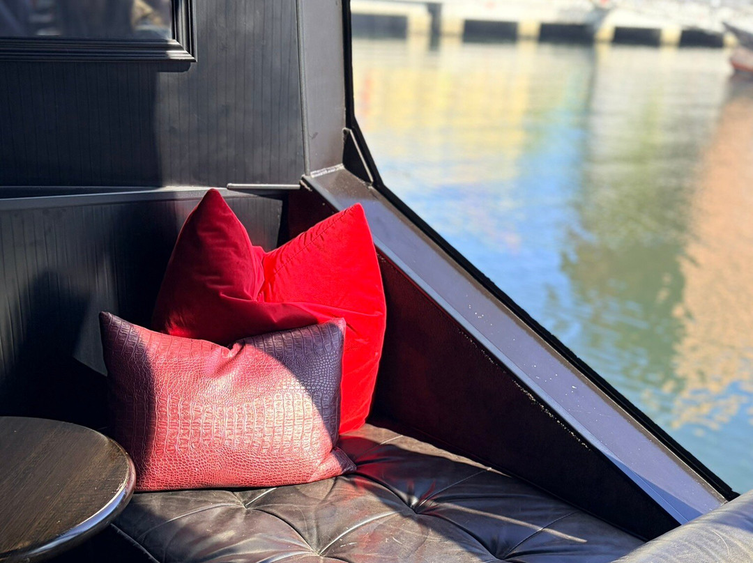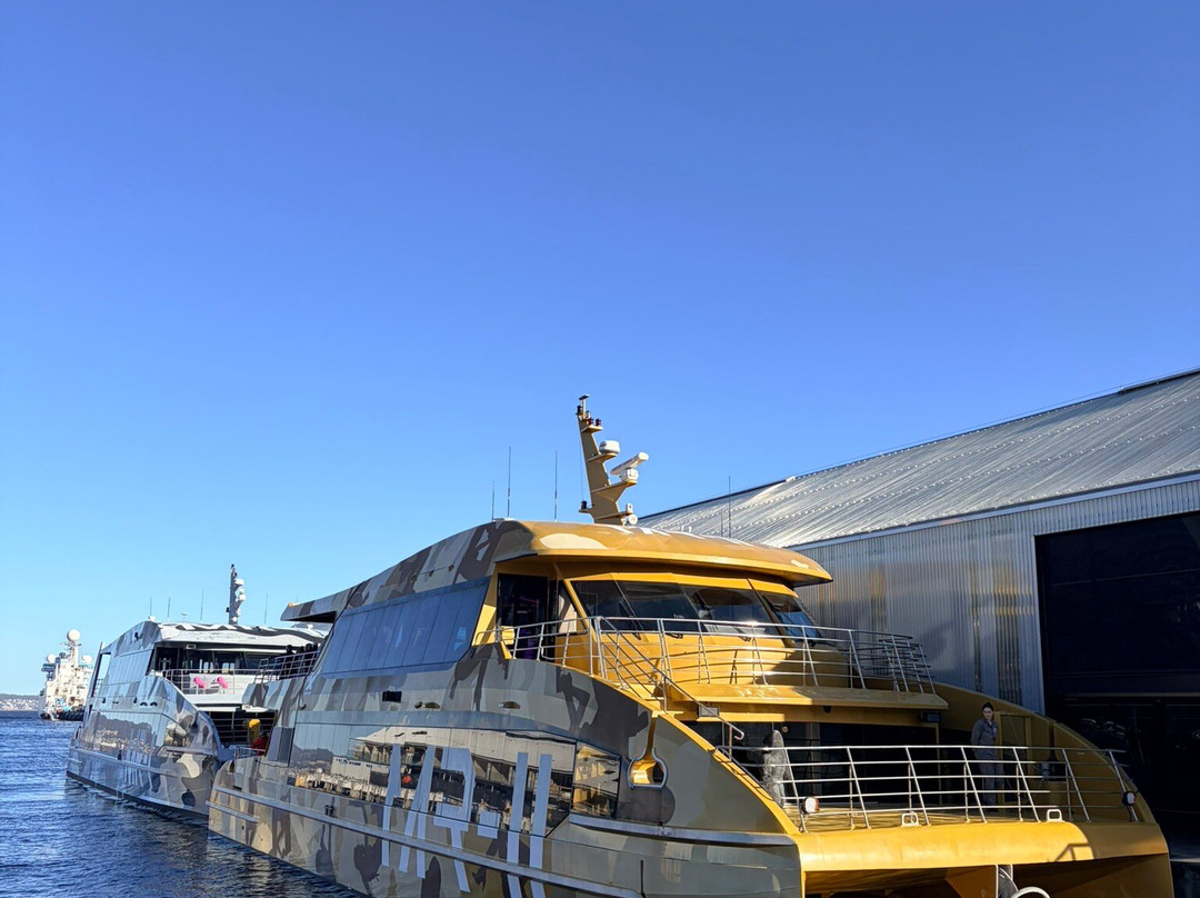 翻译:莫纳渡轮,MONA,霍巴特,塔斯马尼亚:如果您要前往世界上最具争议性的博物馆,那么乘坐豪华的贵宾舱渡轮绝对是您的不二之选。返程时,您将在贵宾专属区域享受水上之旅,品尝精致美味的小食,畅饮果汁或莫里拉葡萄酒。这相当于一次30分钟的葡萄酒品鉴(单程)。我个人不太喜欢莫里拉葡萄酒,但以大杯品尝不同酒款的体验还是很有趣的。雷司令起泡酒是最佳选择——如果您乘坐的是早班渡轮,不妨来一杯含羞草鸡尾酒。霞多丽和桃红葡萄酒我不会再尝试了。我们享受到了艾玛提供的顶级服务,她拥有丰富的葡萄酒知识,还有热情洋溢的艾丹。强烈推荐您体验一下贵宾舱,绝对物超所值。#eatstylishtravelstylish