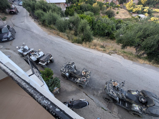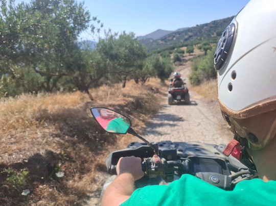 由于当天天气酷热,Dimitris 安排了日落越野之旅,这非常适合避开一天中最热的时候。我们先沿着公路上山,然后转向越野。我的同伴觉得四轮摩托车状况良好,操控性也很好。Dimitris 提供了使用说明和指导,反响热烈。