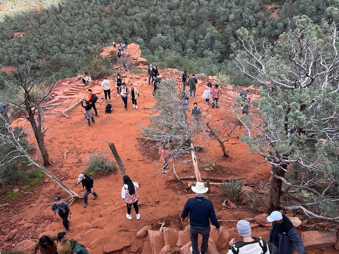 点评:Parking can be a challenge as the parking lot is not big but there are spots along the road if you get lucky. This is a VERY popular hike, be prepared for lots of people. Get there early, for parking and especially during warmer months as there is very little cover on the trail. The only bathroom is at the start of the trail. We left from the Mescal trailhead and the trail is rocky so you have to watch your footing. Steady incline and manageable until the last 1/4 mile to the bridge, which is stone stairs, some with large step-ups and difficult for shorter people. Helps to have someone with you to lend a hand in places.