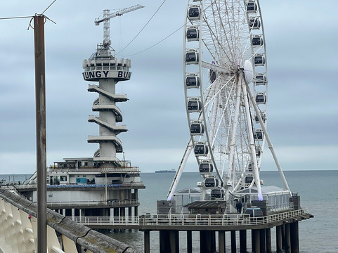 翻译:如果不乘坐码头上令人印象深刻的摩天轮,斯海弗宁恩海滩之旅就不算完整。这个地标性建筑高耸于北海之上,提供了从全新角度体验周边地区的绝佳机会。