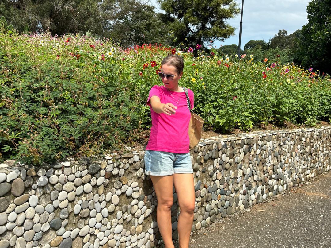 点评:Сразу скажу, что не смотря на ньюансы - мне очень понравилось и мужу, который вообще все цветочки фиолетово с удовольствием гулял. Дети 6 и 10 лет- просто в восторге, что можно было бегать вниз по дорожке и разглядывать все цветочки. Ехали из Батуми до южных ворот. Такси останавливается не у ворот , а чуть дальше и вначале мы растерялись - но нам показали направление и минуты 3-4 и мы были у ворот. Цена за взрослый 50 лари, до 6 лет бесплатно. Почитав другие отзывы - приняли сразу решение , что на гору поедем на багги и будем спускаться вниз с другой стороны - так легче идти. Поехали специально днем , тк написано было о прохладе. И это действительно так - там много деревьев, лавочек, резервуаров с водой попить. На верх путь 10-15 минут, по дороге рассказали о местах что проезжали ( хотелось выскочить везде и нафотографировать) багги с 1 человека 20 лари. Вниз пошли мимо тропиков японского сада - прудиков! Высадились не в самом конце - а у зип-оайна и докатились до точки от куда шли. Трасса очень небольшая - но нам понравилось. А еще там в 2 местах стоят вагончики с мороженным- это детей окончательно покорило. Уже при выходе - пошли на лево и через ворота - которые сейчас не работают - вышли на перрон - пересекли жд пути и появился пляж с очень крупной галькой. Искупались. Кстати в парке вай-фай был бесплатный! Так что рекомендую однозначно