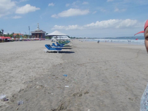点评:- The whole beach in Bali with U-Shape and "Seminyak" alone is about 3 km Long with some Tree aligned on wide brown soft Sand beach and with not calm not clear Indian Ocean Water with small to medium strong repetitive Waves so, there are wind Surf activities and you sometimes see also a red Flag with dangerous sign written above that “Swimming is prohibited”.