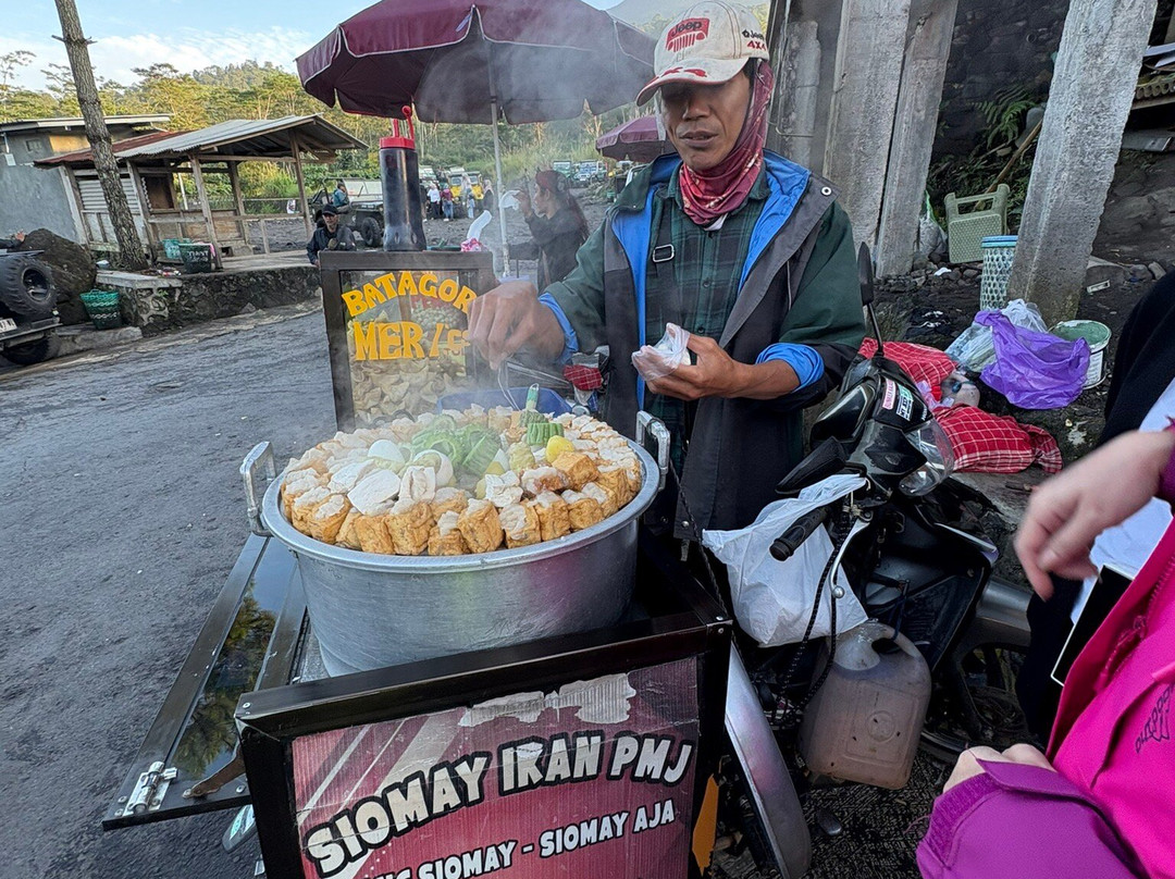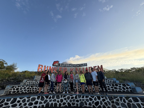 行程大约1小时。总之,我们看到了日出,但不像在伊真布罗莫火山看到的日出那样。只是看着天空逐渐被太阳照耀。可以清楚地看到火山喷发的烟雾。除此之外,除了蓝天和一切美好之外,就没什么特别的了。路途崎岖,但不滑,因为现在是旱季。导游很棒,会帮我们拍很多照片。所以,我们来这里的目的只是为了拍照。