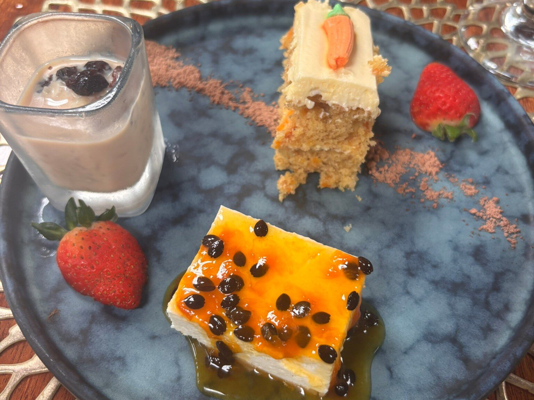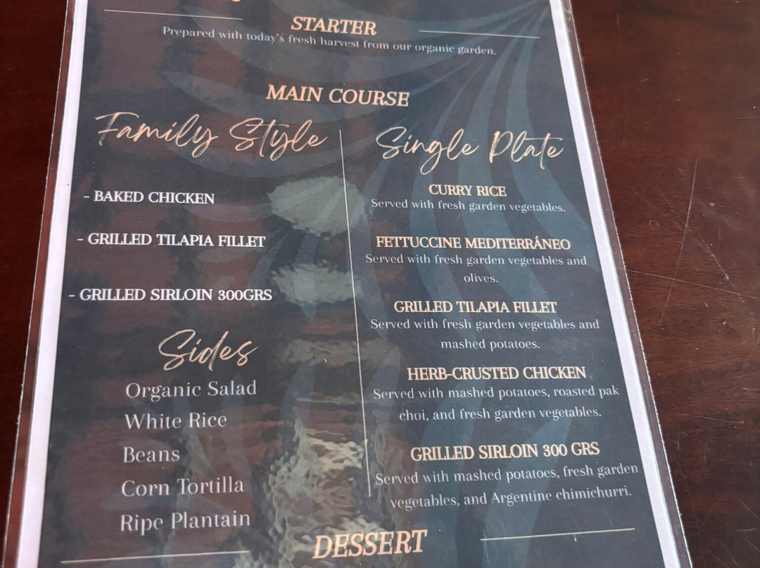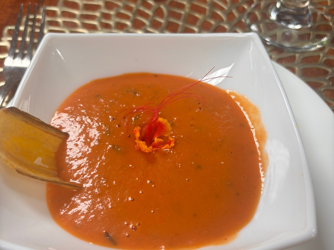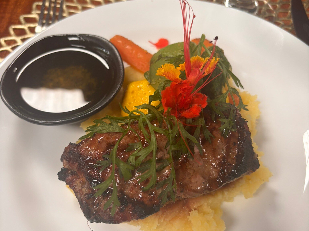 我们第一次来这里,在洛斯利托斯餐厅享用了午餐。服务员非常专业,我们可以选择家庭套餐或单点一份。我们选择了单点,套餐包含一道开胃菜:美味的番茄汤,浇在土豆泥和芭蕉片上,最后点缀着一朵芙蓉花。我的主菜是西冷牛排。牛排铺在土豆泥上,配菜有夏南瓜、嫩玉米和胡萝卜。牛排有点嚼劲,但总体来说味道很棒。甜点我们点了胡萝卜蛋糕、百香果芝士蛋糕和米布丁。服务员还给我们上了一杯菠萝汁。这顿饭非常完美。