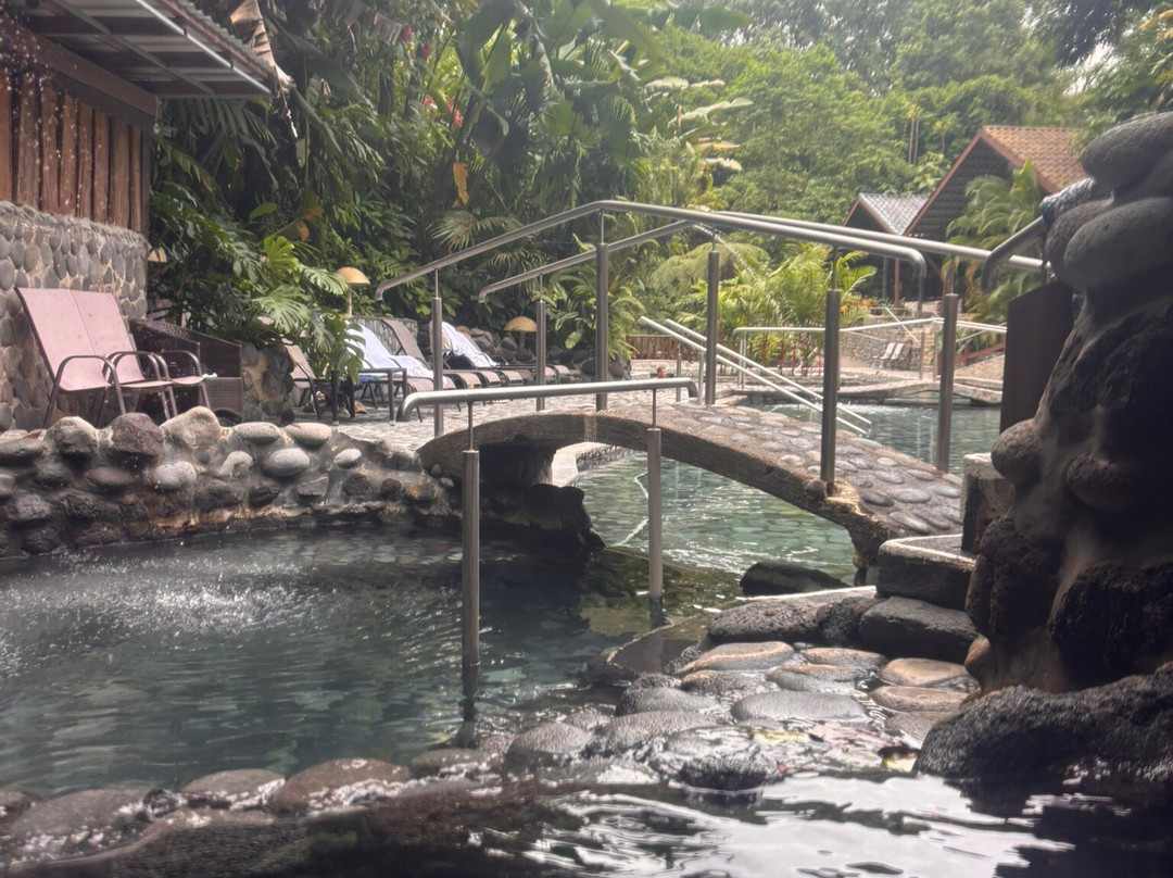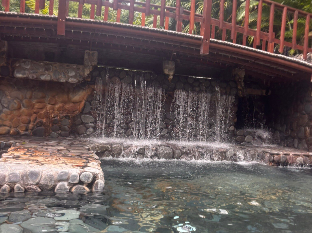 The hot spring here is a series of natural pools and they go from the top to the bottom with the top being the hottest. The beginning of the middle section was really nice if you just want to lay down for hours without getting out of the pool because it has built in beds that we can lay down and relax.