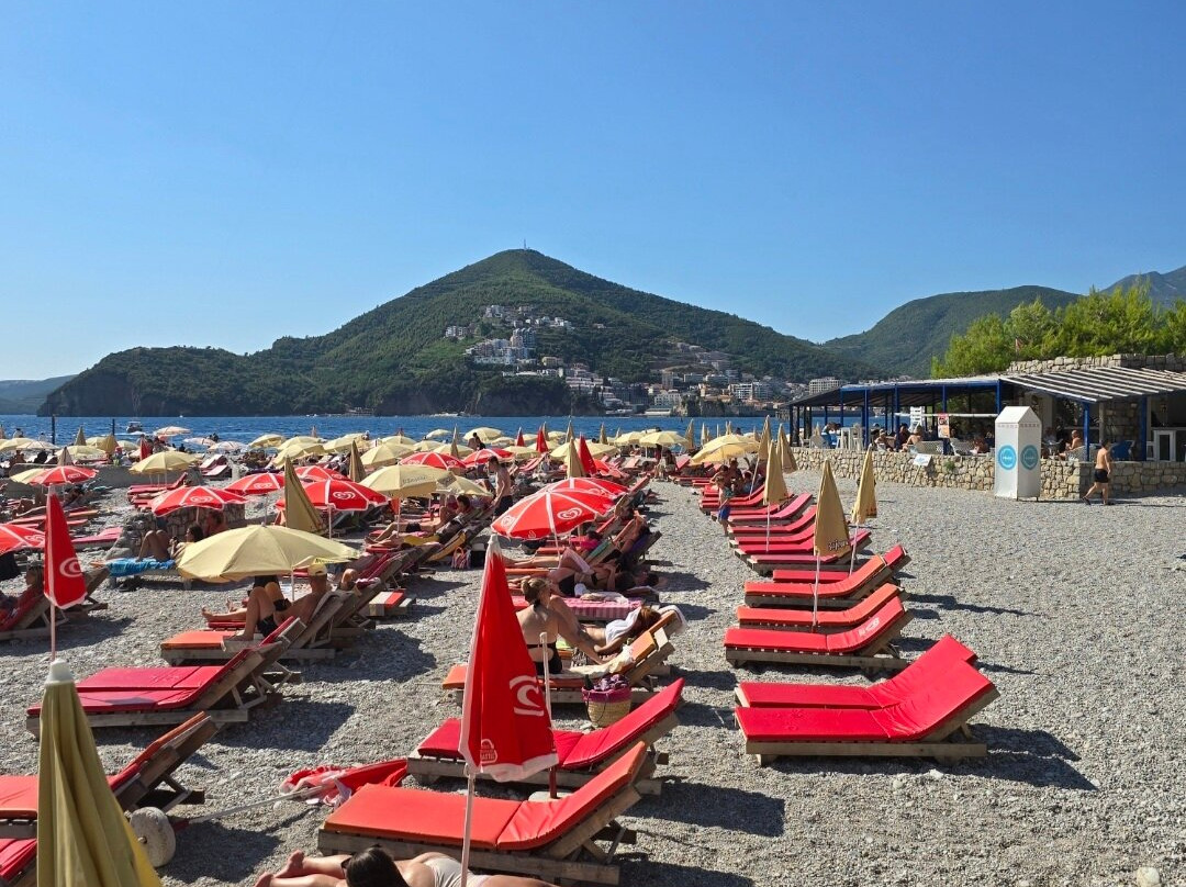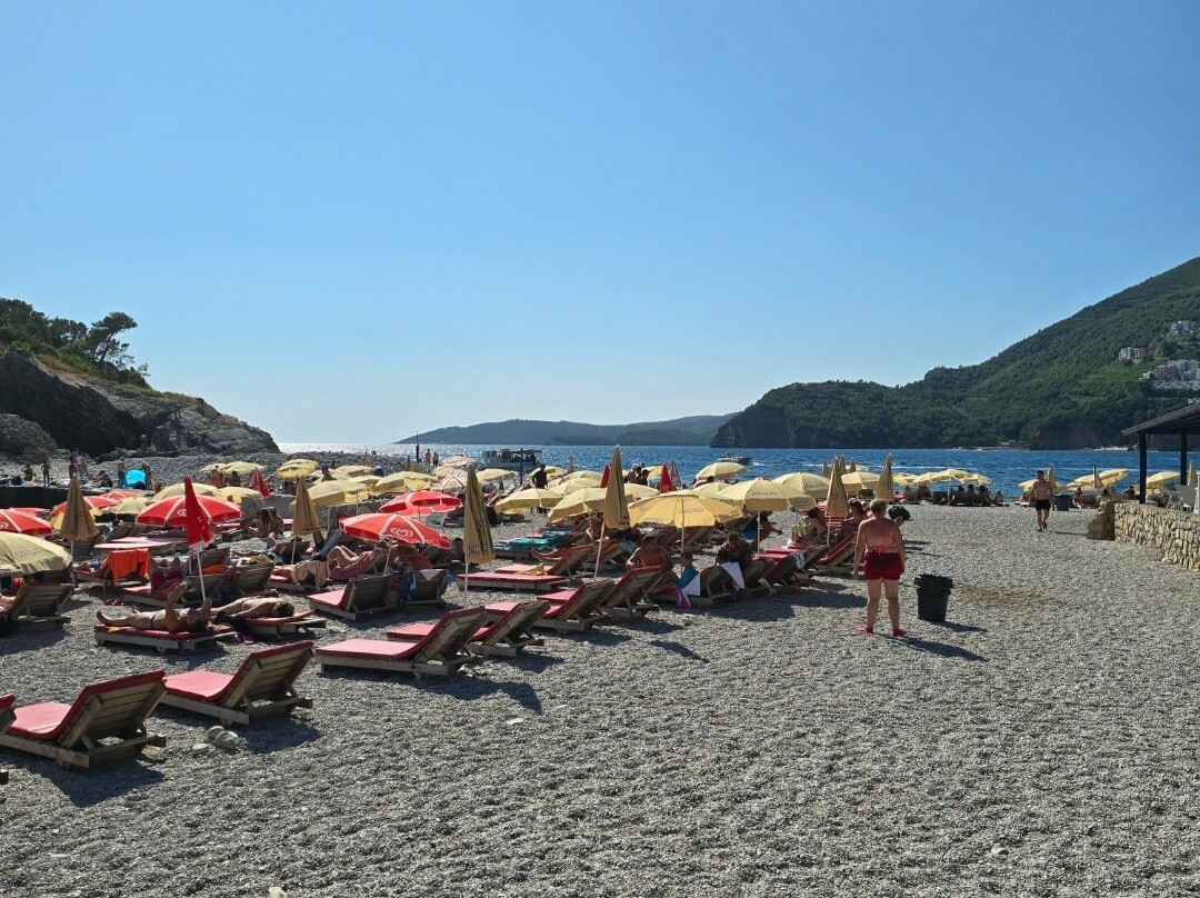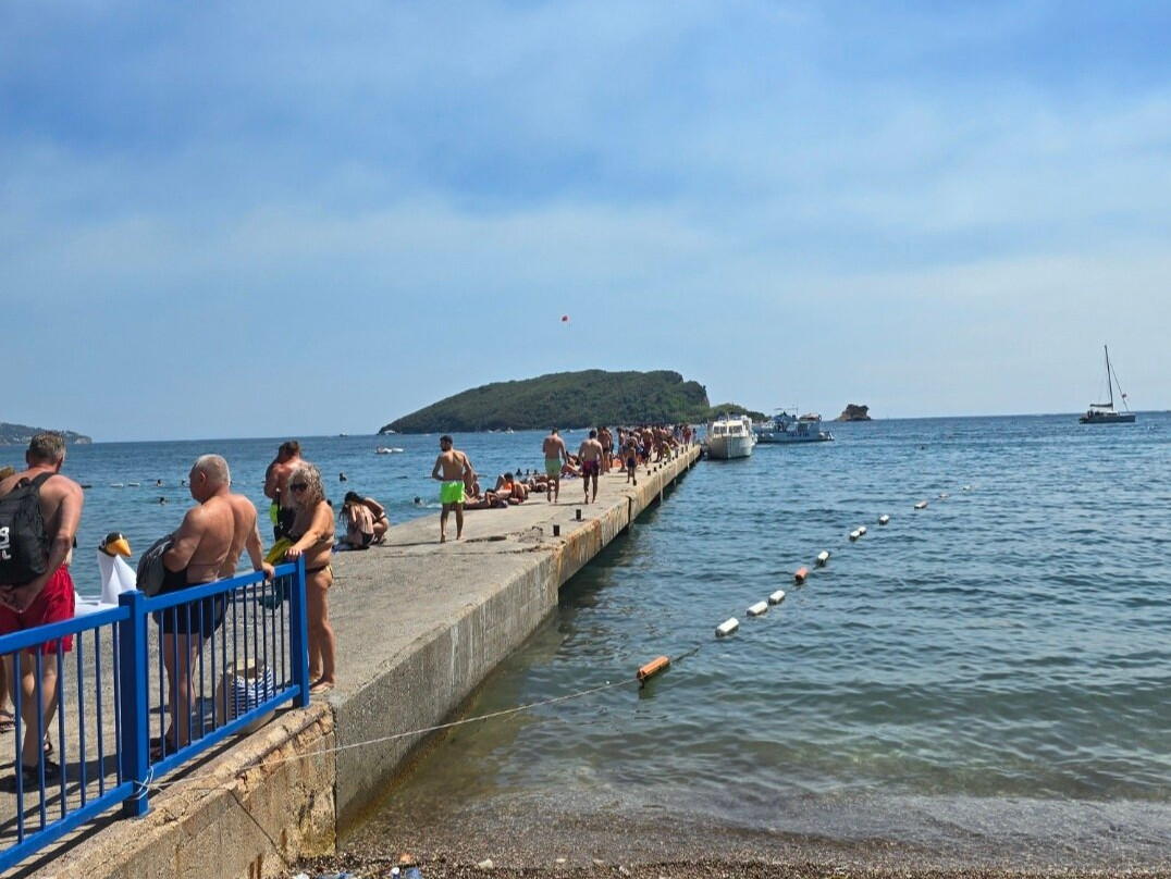 翻译:我从布德瓦乘船前往岛上。我在堤岸买票,船从那里出发,往返票价7欧元。每小时一班。船很大,可以容纳很多人,还可以坐在屋顶上。到岛上的路程大约需要30分钟。沿途,您可以欣赏到群山和圣斯特凡岛的美景。岛本身很小——有一座小教堂、几个海滩、几家小吃店和一家餐厅。这里的景色非常美丽。海滩上有躺椅,您也可以躺在毛巾上休息。水很干净,但有很多石头(最好穿专用鞋)。岛上有淋浴。游泳后,我决定去夏威夷餐厅吃饭——说实话,它的评价不太好。我冒险点了一份披萨和啤酒。服务员很有礼貌,也很周到。大约20分钟就上菜了。我吃了黑山披萨——我很喜欢,味道好极了。价格确实有点高,但选择不多,可以用银行卡支付。厕所是收费的。总的来说,尽管有些细微的差别,我还是很喜欢这里。我还会再来这个岛的。