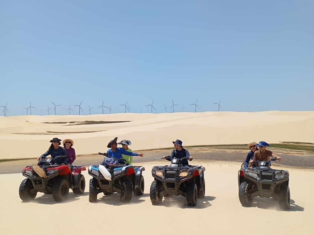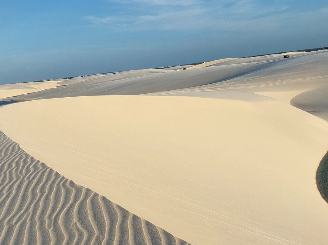 点评:O parque nacional dos Lençóis Maranhenses é um lugar único, a natureza caprichou em cada detalhe que ali está, para acessar o parque você precisa contratar serviços de pessoas autorizadas a entrar no parque, pois necessita de uma 4x4 reforçada e pessoas com experiência e liberação para esta aventura, os melhores meses para visitação é de maio a agosto, porque não tem muita chuva e as lagoas estão cheias, água doce das chuvas que caem de novembro até abril. Você pode tomar banho tranquilo, mas é recomendável usar camisa UV, chapéu com cordinha, pois pode voar com o vento, óculos de sol, são utensílios básicos para este passeio. Recomendo alojamento em Barreirinhas que é uma cidadezinha maior e a infraestrutura melhor, mas você também não deve deixar de visitar Santo Amaro, as dunas de Santo Amaro são muito mais bonitas, branquinhas e a vista é muito linda também, Atim é uma cidadezinha pequena, infraestrutura menor, mas o que a enriquece é que você tem que atravessar as dunas para chegar até lá, esta que é a beleza de Atim, também ela fica próxima ao mar, as pessoas não costumam tomar banho de mar por lá, por ser agitado, e com tantas lagoas por perto a preferencia é para elas. Claro que tem as mais visitadas, mas com a quantidade de lagoas você pode escolher uma só para você. Todas são belíssimas. Um por do sol incrível, vale a pena estes passeios, e também o passeio de barco é maravilhoso pelo rio preguiça. O passeio de quadriciclo é maravilhoso também, mas a pessoa que vai pilotar tem que ter bastante força nas mãos, pois ele não é hidráulico e você passa por subidas e decidas que pedem força para sustentar. É uma aventura única e inesquecível. Você vai amar.