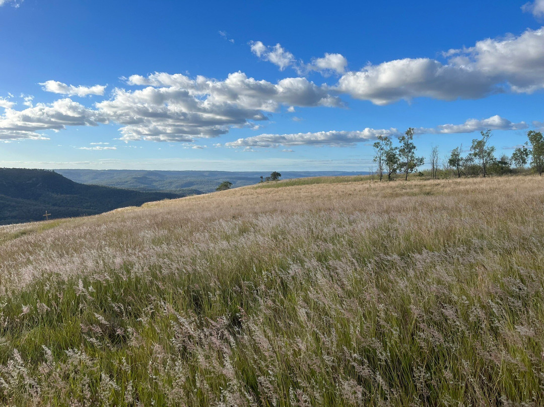 点评:I tackled Table Top as part of my 9 month training for Mt Kilimanjaro. It’s a short 2km return hike but it’s challenging & requires technique, concentration & reasonable fitness. The first 100-200m is straight uphill & will really get your heart pumping. From then there is a challenging section to navigate over large rocks where focus & strategic foot placement is essential (I’m sure people have twisted many an ankle here). The next section is uphill with thousands of small black rocks/pebbles underfoot for a few hundred metres - you need to take care here too as it’s easy to lose grip. Then the last section is sheer rock face that involves rock climbing/scrambling & you need to pull yourself up carefully with hands and feet - taking it carefully and ensuring four points of contact here is key as it would be easy to lose balance/placement & fall a considerable distance below! But for me I enjoyed the challenge & this was great training. I saw a family doing geocache on the way up. Once at the top the views are indeed spectacular. You can walk either side via tiny little clearings in the long grass and get views from both north & south. On the northern side there is a rock sculpture with nice views and I spent 15 minutes just chilling and looking at the sky and the mountains off in the distance.
