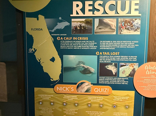 翻译:如果您正在寻找一个更典型的水族馆,里面有很多水箱、各种各样的动物,尤其是企鹅和海狮,甚至还有动物“表演”,那么您或许应该仔细看看克利尔沃特海洋水族馆的特色和它的使命。对我们来说,这个水族馆与其他大多数水族馆略有不同,这也是我们喜欢它的原因!!还有什么地方能让您近距离观看一只受伤的海龟接受红外线治疗,两只获救的水獭在另一只因关节炎行动不便却得到温柔呵护和宽敞围栏的围栏旁嬉戏?五只海豚都无法放生,它们在壮观的新水箱中玩耍,游客可以观看它们在水下和水上的滑稽动作。我们还在知识渊博的工作人员和志愿者的帮助下体验了乘船探险。所以,是的,我们确实认为克利尔沃特水族馆值得五星好评。它非常值得一游(或两次),也值得您的支持!!