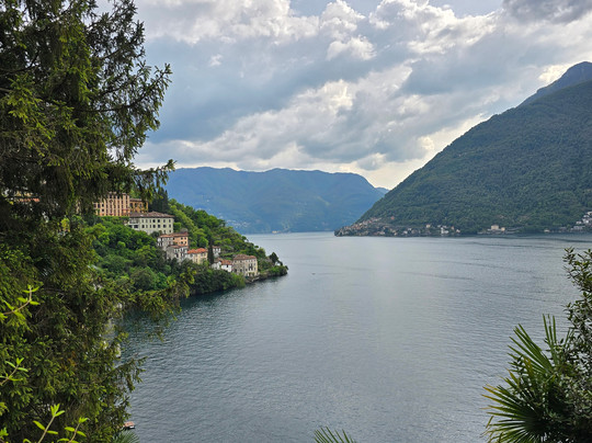 翻译:科莫湖位于米兰以北约一小时车程处。湖面面积很大,呈三角星形。最有趣的部分是下方的两条星臂,西边是科莫市,东边是莱科镇。在它们之间的北侧是“著名的”贝拉吉奥。