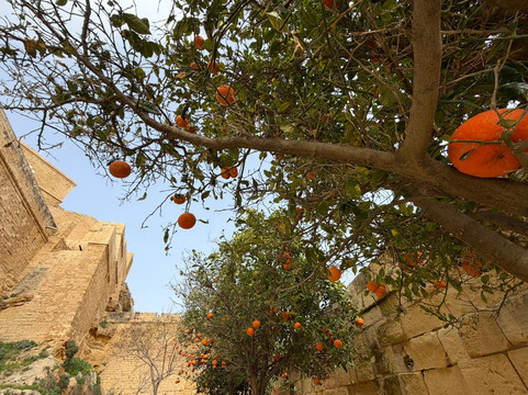 城堡的庭院一周七天都免费开放,这真是太棒了,因为这里是该地区的最高点,在一天中的不同时间,当然还有不同的天气条件下,去那里欣赏岛上的景色都非常有趣:) 我们很喜欢那里的橘子树,数量很多,即使在一月份,树上也挂满了橘子——热带水果和“岩石”碰撞在一起,真是太酷了:)