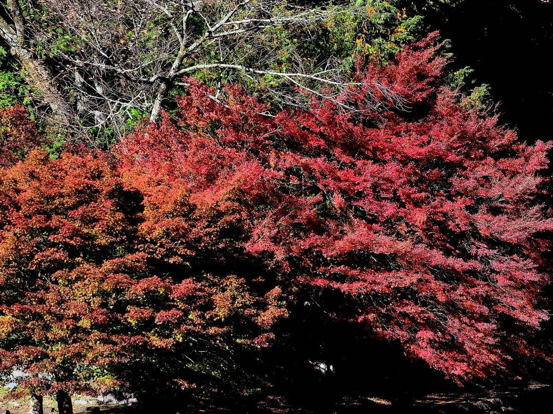 當天我是先去下呂合掌村再來到溫泉街,其間從那步行至溫泉街前,來到雨情公園,那的楓葉特別的美麗,駐足觀賞了不少的時間沿途亦有不少,基本上這里多少能拍到不少秋楓的景色,特別是在橋下那幾株紅的正盛,吸引了不少人駐足拍照,來到溫泉區主要不就是泡溫泉,即便時逢11月下旬,天氣還沒開始變冷,或許不少人來此走走都是順便賞楓,泡湯倒是其次.
