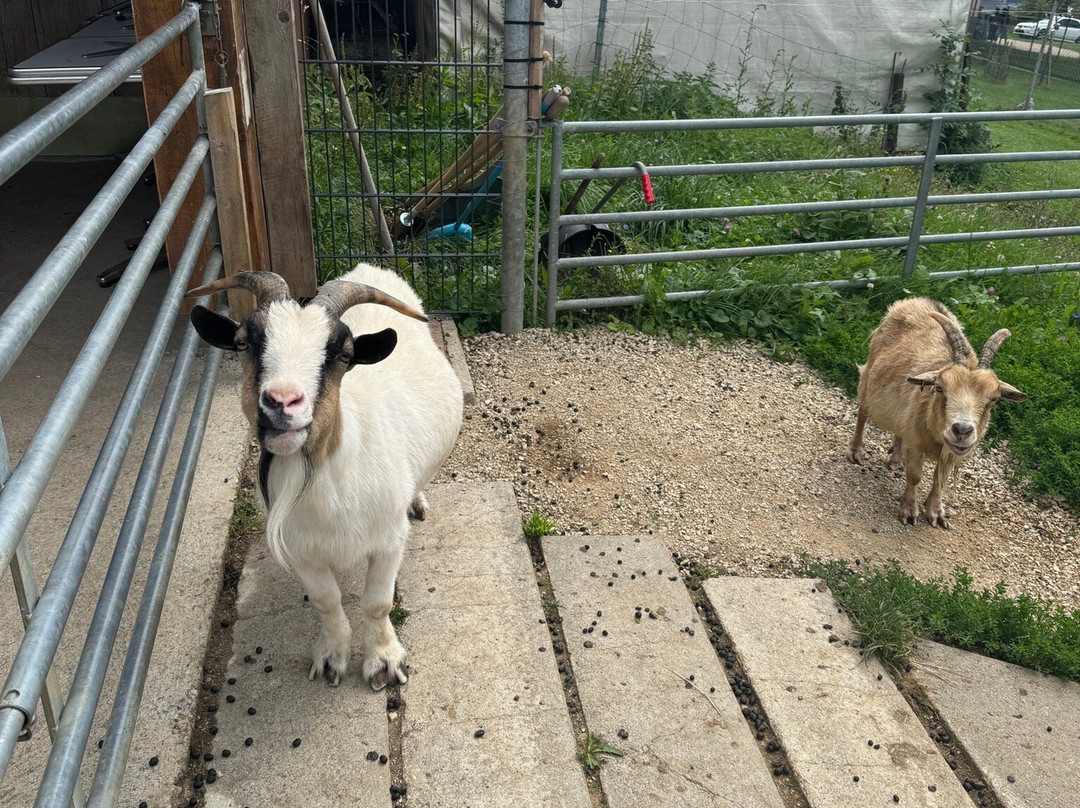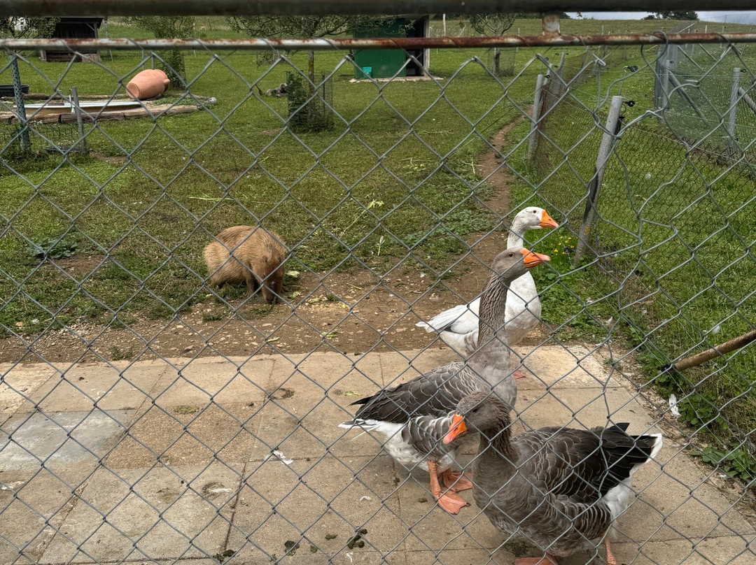 点评:Nous avons visité la ferme et surtout atelier capybarra , oui la ferme est vieillot a besoin de rangement, y a bcp de choses qui traînent partout mais le reste est sympa . L’atelier cappybarra 1h environ est cher pour 70 franc , les participants reçoivent un gobelet (2fr en boutique) , une photo et un calepin y a 15 min de théories et 1poivron à donner aux cappybarra et câlins , c’est une super découverte mais cher pour ce que c’est et surtout que c’est difficile de trouver des billets .. la dame responsable est distante , froide oui mais je pense que chacun son caractère.. ça sera mieux de mettre une jeune fille qui fait que ça les ateliers et qui sera plus gentille, souriante à mettre à l’aise les enfants .
