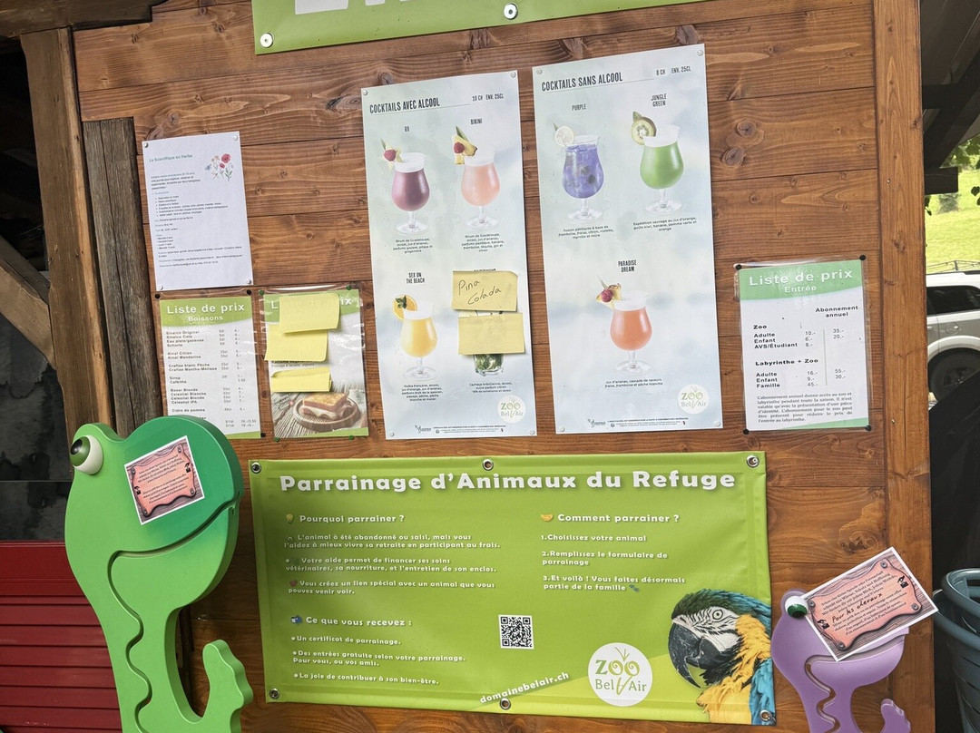 L’entrée est 10 franc pour les adultes, petite restauration, glaces , cocktails, place pic nique dispo et surtout des jeu pour petits enfants dispo pour jouer au sable ou faire mini vélos .. on peut caresser les chèvres et acheter nourriture pour chèvre .. visite sympa à faire une fois