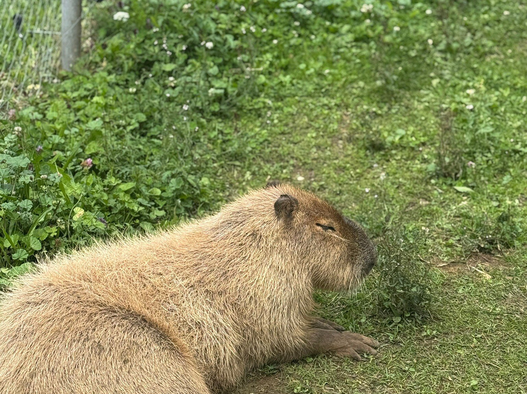 翻译:我们参观了农场,尤其是水豚工作坊。没错,农场确实有些老旧,需要整理,到处都是乱七八糟的东西,但其他方面都很不错。水豚工作坊大约1小时,价格不菲,70法郎。参与者可以获赠一个水杯(在商店买的话2法郎)、一张照片和一个笔记本。此外,还有15分钟的理论课,以及一个可以喂水豚的辣椒和拥抱。这真是一次很棒的体验,但价格不菲,尤其门票很难买到……负责的女士有点冷淡,是的,但我觉得每个人都有自己的性格……最好能找个年轻女孩专门负责工作坊,这样会更友善,面带微笑,让孩子们感到安心。成人门票10法郎,提供小吃、冰淇淋、鸡尾酒、野餐区,最重要的是,还有适合小朋友在沙滩上玩耍或骑迷你自行车的游戏。你可以抚摸山羊,买羊饲料。值得一游。