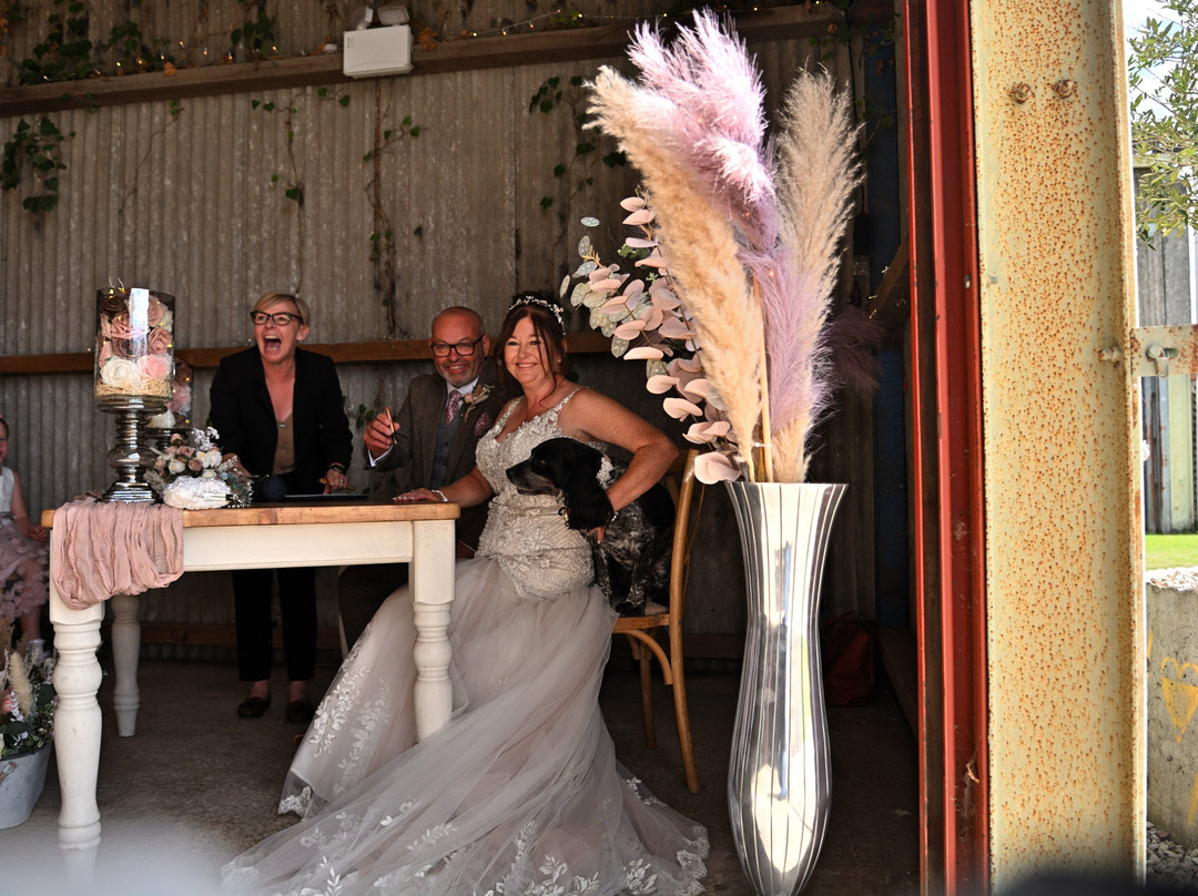 翻译:我们对Bert's Barrow的感激之情溢于言表,感谢他们为我们打造了一场完美的婚礼。从始至终,Charlotte和Jason全程陪伴,帮助我们量身定制了专属的婚礼。婚礼仪式可以选择室内或室外,我们最终选择了室内,那里温馨又美丽。我的儿子为我弹奏竖琴,我的父亲牵着我走过红毯,我的女儿和孙女为我们朗读了经文,让这一天充满了感动。哦,对了,我们的西班牙猎犬Jessie担任了戒指童,为婚礼增添了一份特别的惊喜。我得以发挥自己的创意装饰所有的谷仓,并在婚礼前一天完成了布置,这让婚礼当天的一切都井然有序,这都要感谢Charlotte和Jason。特别感谢Liquid Catering,他们提供了烧烤大餐和饮品,晚上还提供了披萨,大家都赞不绝口。当天最精彩的部分是我们乘坐拖拉机前往田野,在那里我们拍到了一些非常棒的照片。如果你正在寻找一个具有乡村风情、多功能性和美丽氛围的婚礼场地,那么这里绝对是你的理想之选。