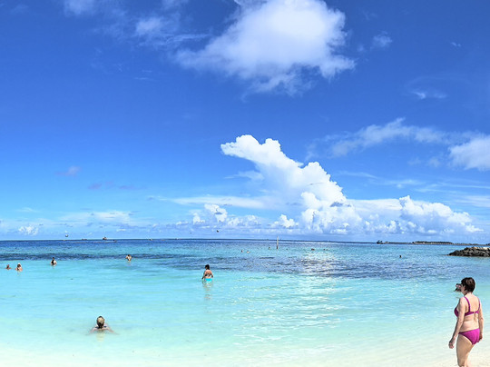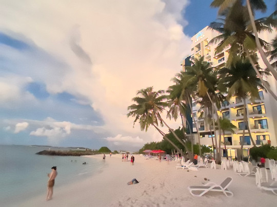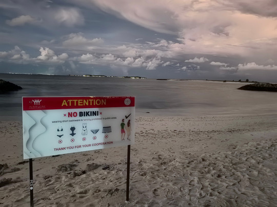 点评:Как это бывает на "Трипэдвайзере", однажды неверно обозначенный объект наполняется отзывами о другом, внося путаницу. Все отзывы здесь не о Ноу Бикини пляже, а как раз о Бикини-пляже. Ноу-бикини пляж находится рядом, и на нём никто не купается, т.к. купальники и плавки там запрещены. И хотя вряд ли тебя ждёт полиция нравов как в Саудовской Аравии и Иране, но наличие тюрьмы, занимающей треть острова Маафуши, не способствует тяге к экспериментам. Так что на пляже No Bikini только фотосессии. Только море и небо, людей нет. А вот пляж рядом с отелем Arena как раз Бикини, и все туристы концентрируются здесь. Пляж небольшой, разделённый косой. На правой в основном посетители отеля, на левой все остальные. Хотя, думаю, всем можно и на правый, ибо пляжи, скорее всего, как и везде в госсобственности. На Бикини бич есть две фишки Мальдив -бирюзовая вода и пальмы, так что Инстаграм пустовать не будет. А вот с остальным- проблема. Кабинок для переодевания нет. А ведь хождение по острову в купальниках не приветствуется, как уже я писал выше. Душа нет. Лежак можно получить в нагрузку к коктейлю за 6 долларов. Вся спортивная инфраструктура - две палки с обвисшей псевдо-волейбольной сеткой. И главное- сидеть в воде здесь неплохо. Мелко и вода чистая. Отсюда, кстати, и цвет... А вот плавать нормально не получится - вдоль берега на расстоянии 10 метров идет гряда из камней и кораллов, о которую ноги и колени ты обязательно поцарапаешь. Ведь глубина на сотню-другую метров- 1 метр!