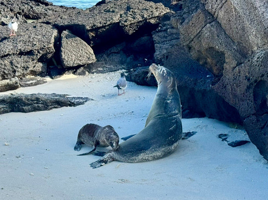 行程安排A+B将游览一些物种最丰富的岛屿,拥有群岛中种类最丰富的野生动物。我们看到了红脚鲣鸟、蓝脚鲣鸟和纳斯卡鲣鸟(分别在不同的岛屿上),不同种类的鬣蜥和陆龟,以及种类繁多的海洋生物,包括珊瑚鱼、加拉帕戈斯鲨、黑鳍鲨、白鳍鲨和锤头鲨,还有大量的海豚、企鹅、海狮、海狗、黄貂鱼等等!