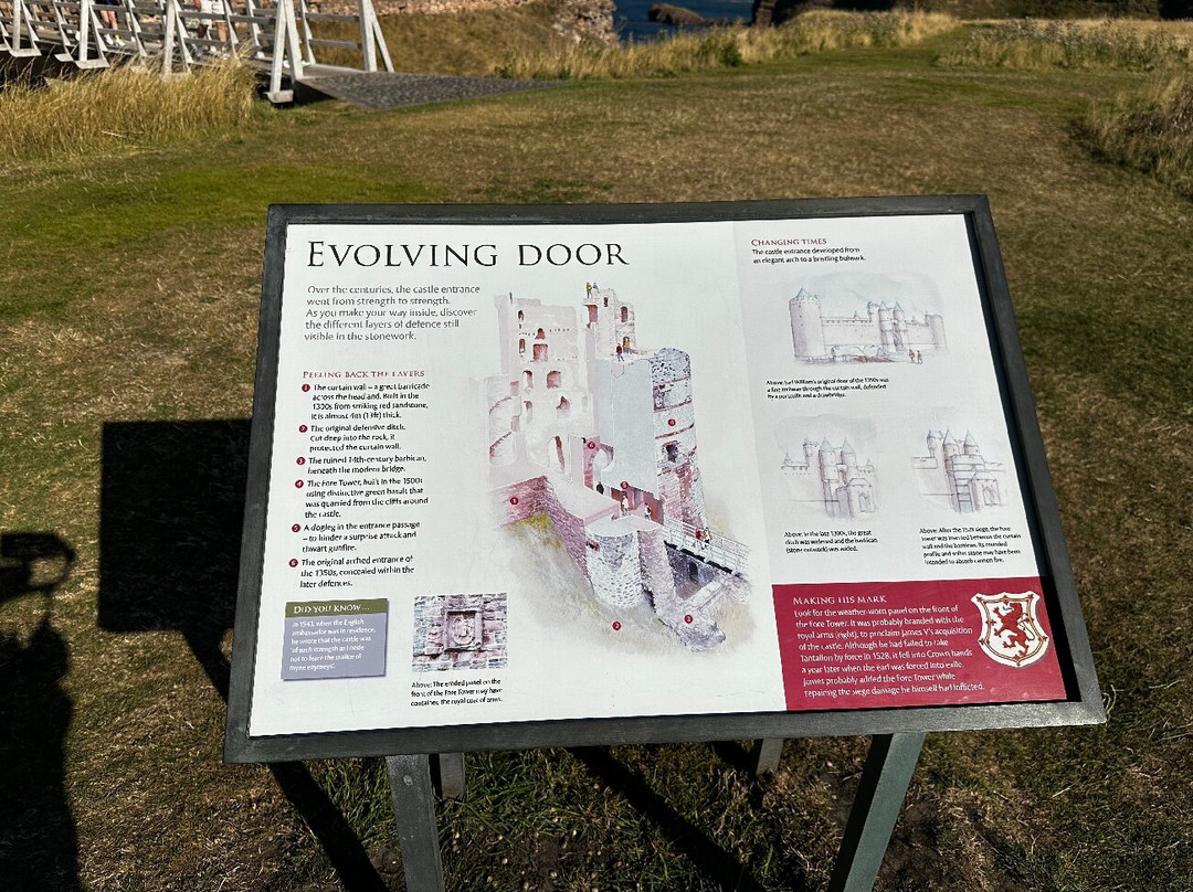 首先映入眼帘的是它的地理位置。城堡坐落在俯瞰北海的壮丽悬崖之上,仿佛是从海岸线上直接雕琢而成。巨大的红色砂岩城墙是14世纪工程技术的惊人壮举——站在它面前,您会真切地感受到苏格兰历史的厚重。