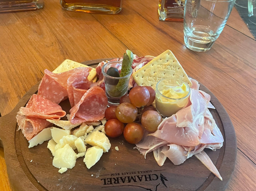 整个酒厂坐落在山间,四周绿树环绕,棕榈树摇曳生姿,景色优美。在私人品鉴过程中,我们享用了一份精心摆盘的熟食拼盘,更添一份尊贵体验。我们品尝了大约15-20种不同的朗姆酒,最喜欢的是香料朗姆酒、香草朗姆酒和咖啡朗姆酒。