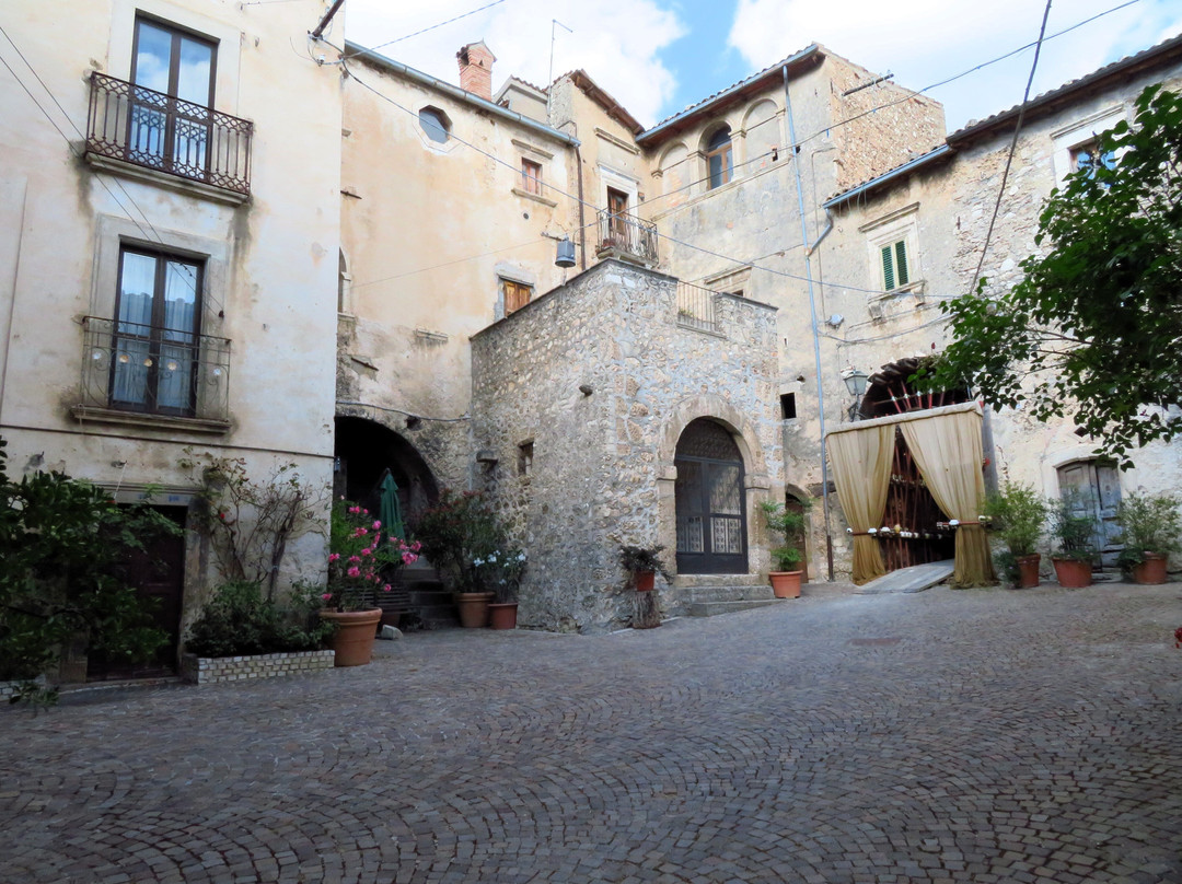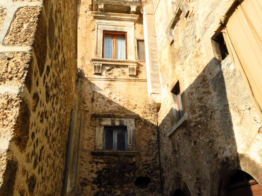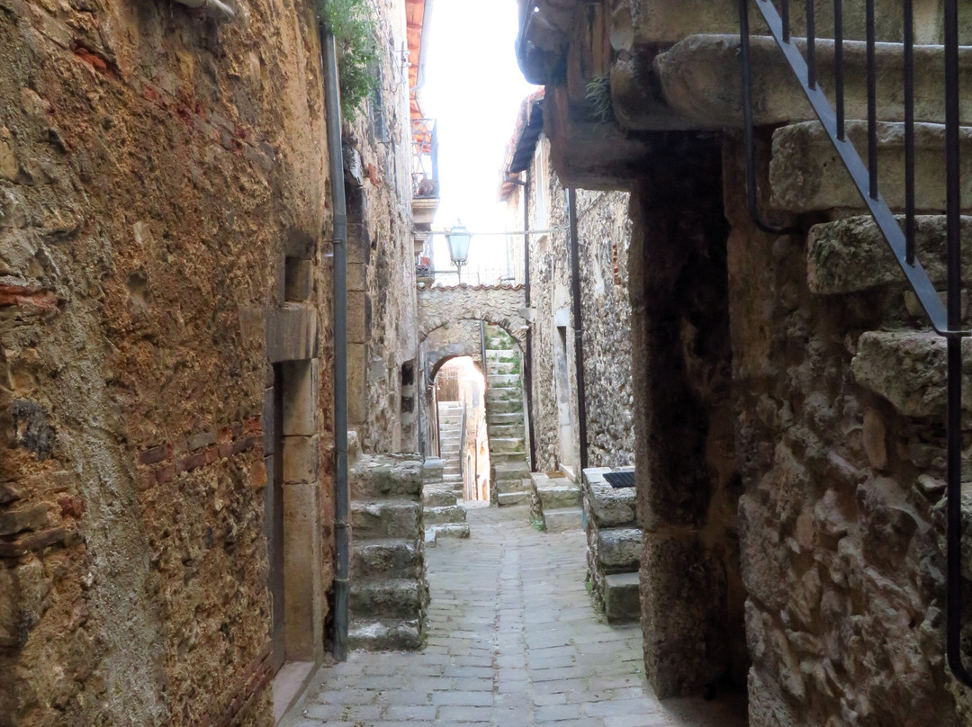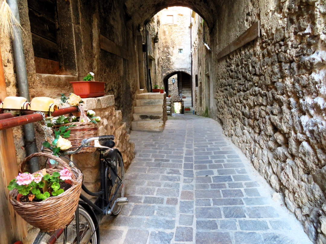 翻译:一个海拔超过1000米的小村庄,其主要特点是它的历史中心,从中世纪时代开始,但具有典型的罗马道路布局,其独特的蛋形(或椭圆形;从上面看让我想起一只乌龟) 。它显然是一个坚固的村庄,周围不是传统的城墙,而是沿着椭圆形周边的房屋墙,其中周期性突出的部分充当了望塔;除了船长宫的吊桥门(西北角)外,还有两个入口仍然存在:西边的马焦雷门和南边中央的圣马蒂诺门。从马焦雷门(Porta di Torre Maggiore)进入,您进入一个大庭院,狭窄的decumanus从这里开始,从西向东贯穿整个坚固的村庄;狭窄的小巷(cardi)从两侧的 decumanus 分支(一侧有 7 个,另一侧有 8 个)。这座中世纪小镇是在罗马城市的经典方案上发展起来的,其特点是众多的拱门和拱形通道,以及小巷两侧的许多楼梯,可到达建筑物的各个楼层:没有护栏的楼梯靠在外堡上,有台阶随着楼梯的升高,它们的宽度会增加(这是出于明显的实际原因,即允许在街道层面更容易通过);有人将所有这些楼梯比作一架无边钢琴的琴键。尽管存在人类活动的迹象(花瓶、窗户上的窗帘),但坚固的村庄似乎大部分无人居住,即使受地震影响的部分(脚手架和障碍物的存在表明)或那些明显被遗弃的部分(因为破旧不堪)与该地区的其他中心相比,建筑物和杂草植被的影响程度较小(只需前往附近的 Carapelle Calvisio 即可了解这一点)。我相信这一百多位居民中的大多数都住在设防村外的房屋里。该镇曾经甚至有 1000 名居民,但人口减少并不是 2009 年地震的直接后果,这场地震只是加剧了第二次世界大战后开始的人口下降:1950 年人口已降至 800 人,然后2009年地震前,人口已降至200人左右,20世纪70年代降至400人。除了美丽的圣马蒂诺门外,不要错过参观邻近的圣乔瓦尼巴蒂斯塔教堂和圣西普里亚诺教堂(后者位于设防村庄外,在从山谷底部升起的道路上)。