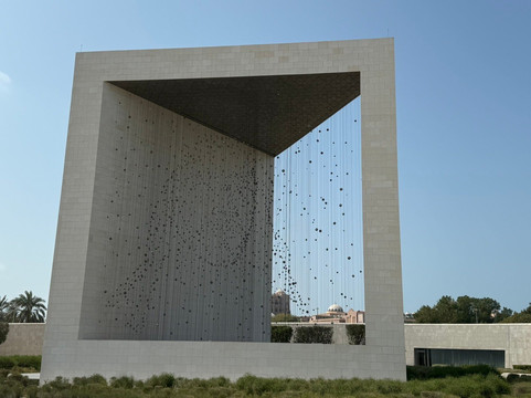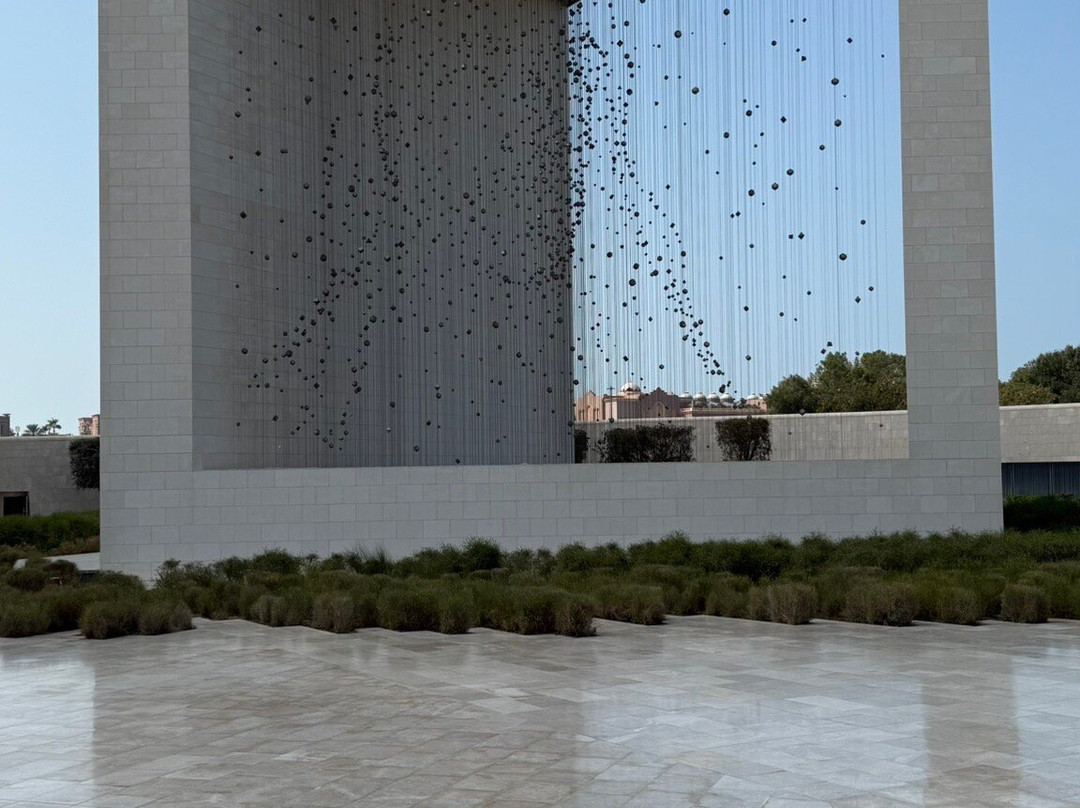 A monumental artwork to honor the founding father, the late Sheikh Zayed bin Sultan Al Nahyan who died in 2004. The Constellation artwork consists of 1,110 stainless steel cables to hold 1,327 “platonic solid”geometric shapes, weighing 250 tons. There are only five platonic solids and each one is made up of a series of identical faces and corners. Renowned for their beauty, these shapes have inspired artists and scientists for millennia.