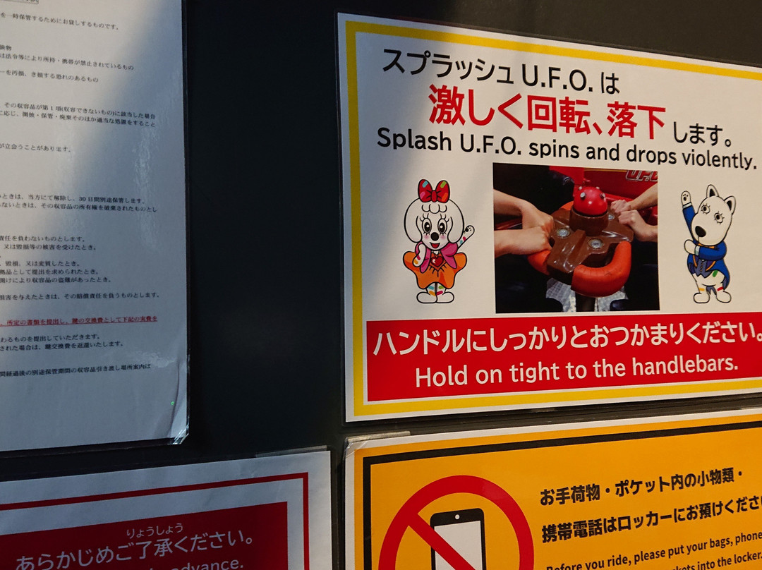翻译:我入园时使用了HANA BIYOR I和读卖乐园一日券的套票。读卖乐园分为家庭区、带状区、太阳广场、旗街、双子塔区、Good Joba!!区等6个区域。每个区域都有精彩的游乐设施。其中,最精彩的是Good Joba!!区。Good Joba!!区由代表汽车、食品、时尚、文具、健康5个行业的工厂组成。与传统的游乐园不同,这里的游乐设施注重参与感、积极参与感、学习感和竞争感,追求更高层次的娱乐性。我的第三选择是Lipovitan Rocket☆Luna,在这里您可以体验Lipovitan D制造工厂和太空旅行。这是一个悬挂式过山车,座位可以前后左右摇摆。第二选择是Spin Runway,这是一款室内过山车,配有螺旋升降机,可以重现服装制造过程。排名第一的是“Splash U.F.O.”,这是一项激流漂流项目,您可以在橡皮艇上体验日清炒面U.F.O.的制作过程。这是一个绝对会让您浑身湿透的游乐设施。乘船处设有雨披(300)和鞋套(100)的自动售货机,但即使购买,您仍然可能会被淋湿。如果您想烘干湿衣服或鞋子,馆外有烘干机(300),不妨尝试一下。家庭区还有海狮表演,这在游乐园里并不常见。