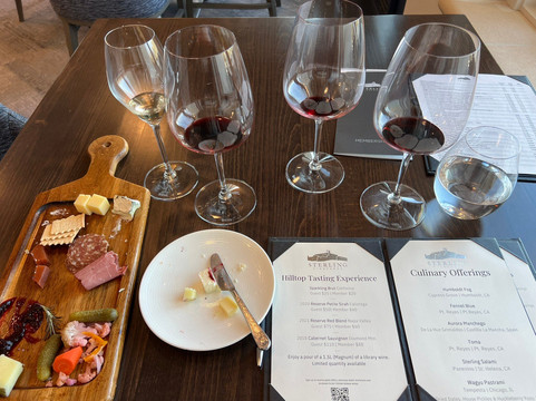 点评:Napa Valley is well worth the tour whether you drink or not. The valley is perfectly flat making it obvious that it was the floor of an ocean. Volcanic mountains on one side and another type of rock on the other, giving both sides a different look and soil. This is why you see red wine varietals in the Napa Valley more than white. As you go north to Calisto it becomes more hilly. It’s such a contrast of textures. Along with endless vineyards, you see olive trees, conifers, palm trees and cactus. There is even Spanish moss in some trees. The buildings are as unique as their founders. Modern buildings, haciendas, Italian villas, English style Victorian mansions and a castle. First, I took the Sterling Winery gondola to the beautiful modern facility for an amazing tasting with Kiera. The view from Hilltop makes you feel like you are on top of the world. Since I was the only guest at the early tasting we had a lovely relaxing morning. She was extremely knowledgeable on every aspect of wine making from growing the vines to proper parings. I enjoyed all the wines during the tasting which is rare for me. Kiera showed me how different items on the charcuterie board affected and improved the taste. The wines ranged from a sparkling brut to a very nice library wine. In the end, I choose the Reserve Petite Sirah. Looks like I’ll be having wine for the next 3 days, since I can’t bring it on the plane. The self-guided tour was a nice walk, bring you inside and out. The views are not to be missed. Because it was self-paced, I got to meet several other visitors and staff. Everyone seemed to be having a great time.