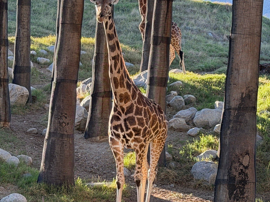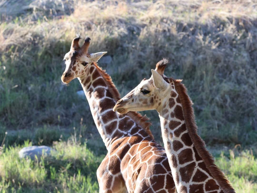 长颈鹿、鸵鸟和其他非洲动物的圈舍非常大,而且非常逼真。这些大型圈舍让我们感到非常惊讶,它们看起来就像生活在野外一样。大角羊的展区实际上是用栅栏围起来的山体的一部分,所以完全是天然的,能如此近距离地看到大角羊真是太棒了。在大角羊餐厅后面的露台上,你可以坐在户外,近距离观看羊群,距离只有20英尺(约6米)。还有一个猎豹展区,也非常逼真,就像在野外看到的那样。这些只是几个例子。